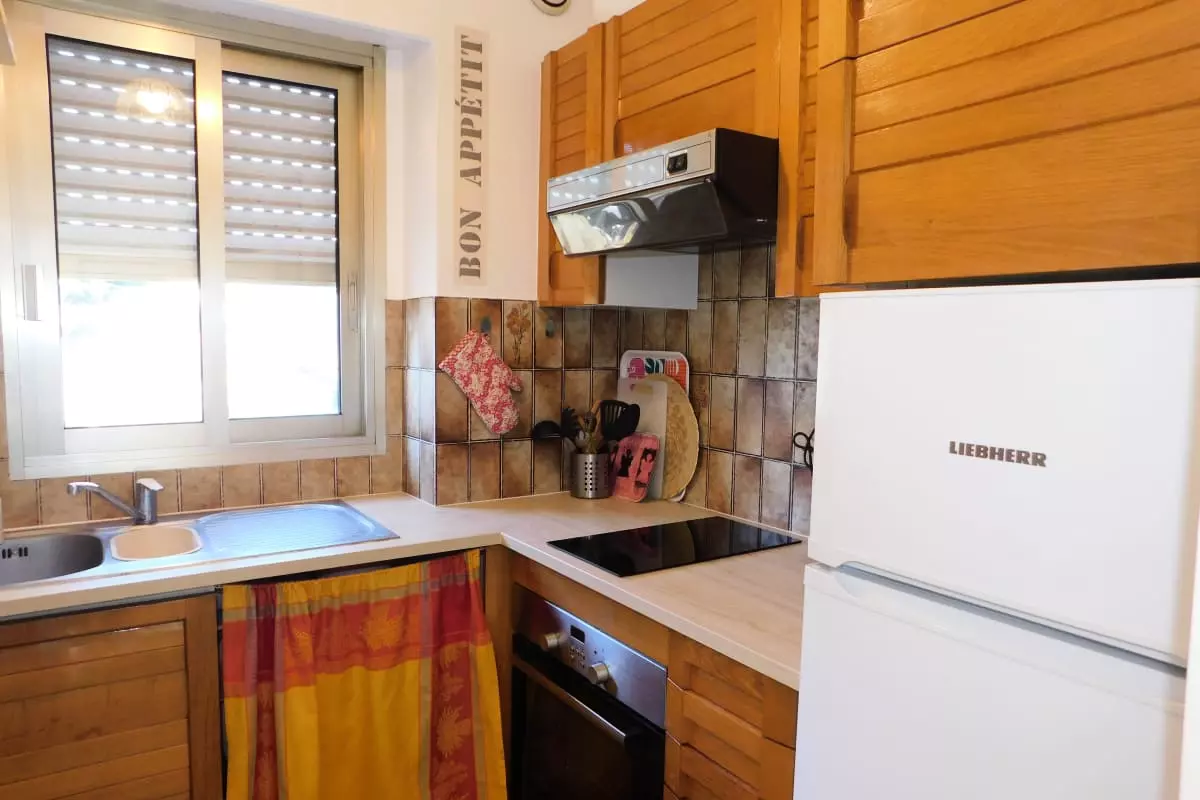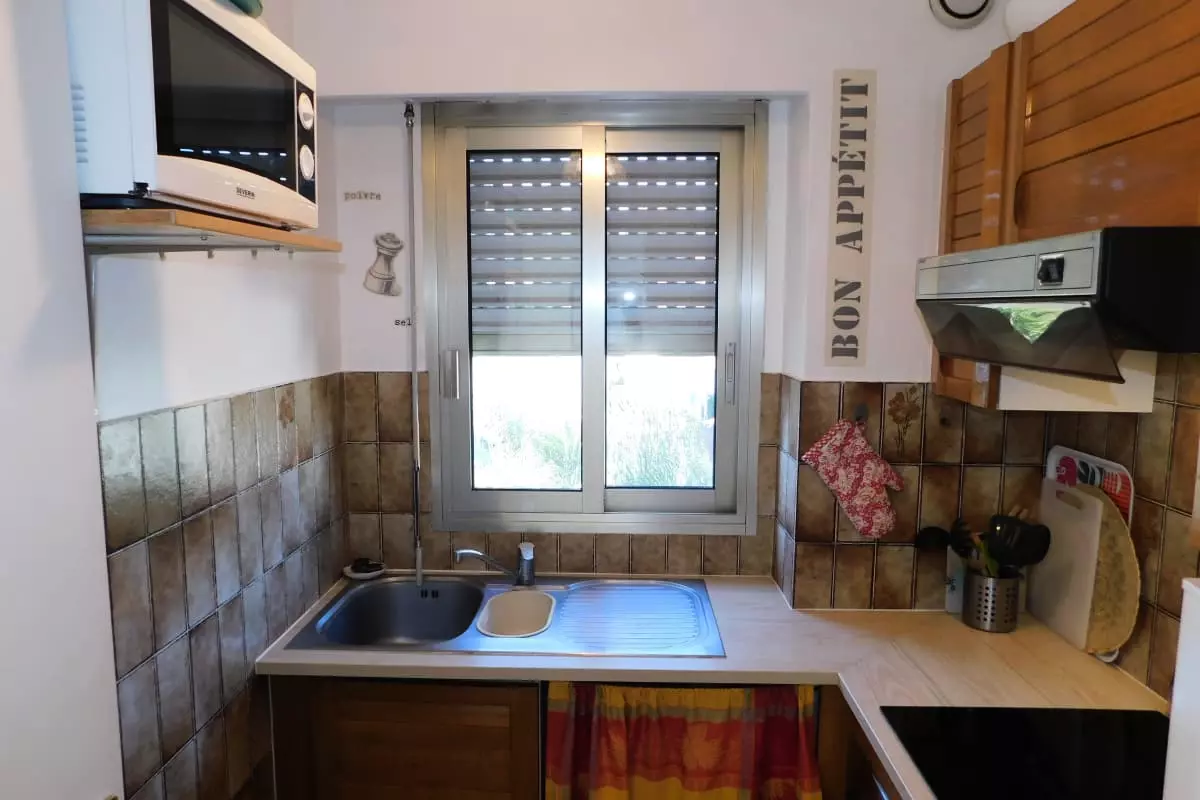 Bienvenue dans cet appartement traversant de 47m2, dans une résidence au calme à deux pas de la plage. En entrant dans cet appartement vous trouverez un couloir desservant une chambre climatisée avec une literie confortable avec un lit en 160. Elle possède un balcon avec une vue sur la montagne. Vous trouverez des toilettes séparés attenantes pour plus de confort. La salle de bain possède une baignoire vous permettant de vous détendre après une longue journée de visite. La cuisine équipée vous permettra de vous préparer de bons repas grâce à ses équipements ; une plaque de cuisson, un four , un micro-ondes, une cafetière à filtre, une bouilloire, un réfrigérateur avec une partie congélateur.