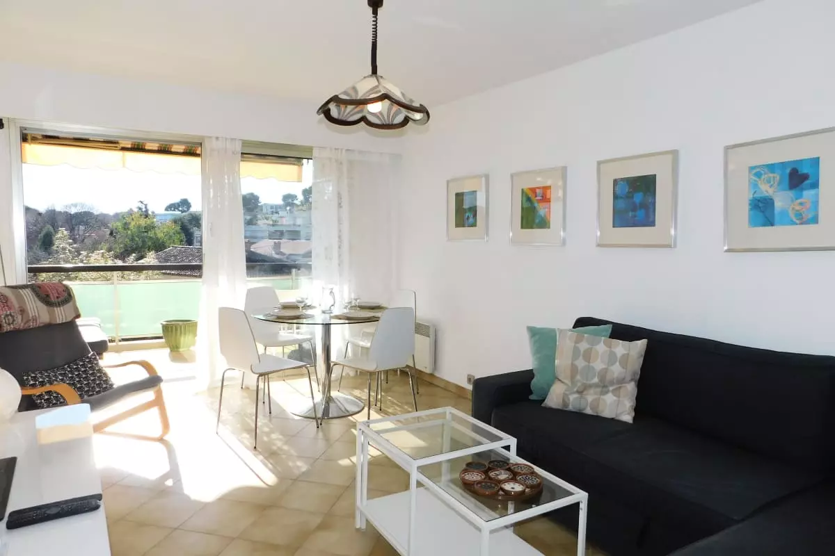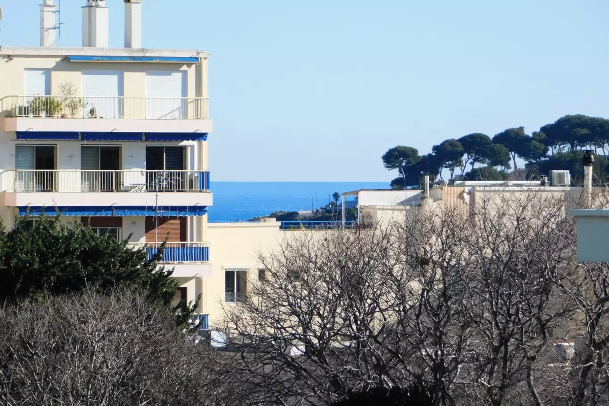 L'appartement est situé à 12 minutes du centre ville, à 300 mètres de la plage du Ponteil à pied. La gare ferroviaire la plus proche est à 6 minutes, l'aéroport de Nice à 28 minutes en voiture.