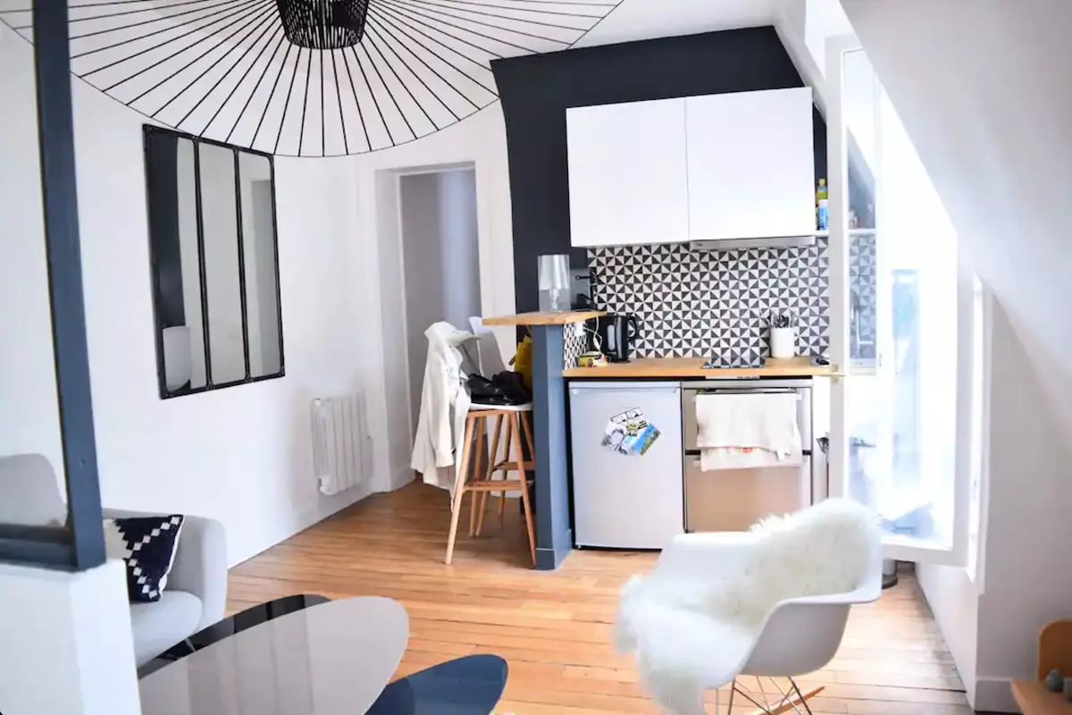 Ce logement est nettoyé et préparé par des professionnels, voir ci dessous pour plus de détails Superbe studio moderne situé au 6e étage avec ascenseur dans une résidence (Cité Lemercier). Composé de :