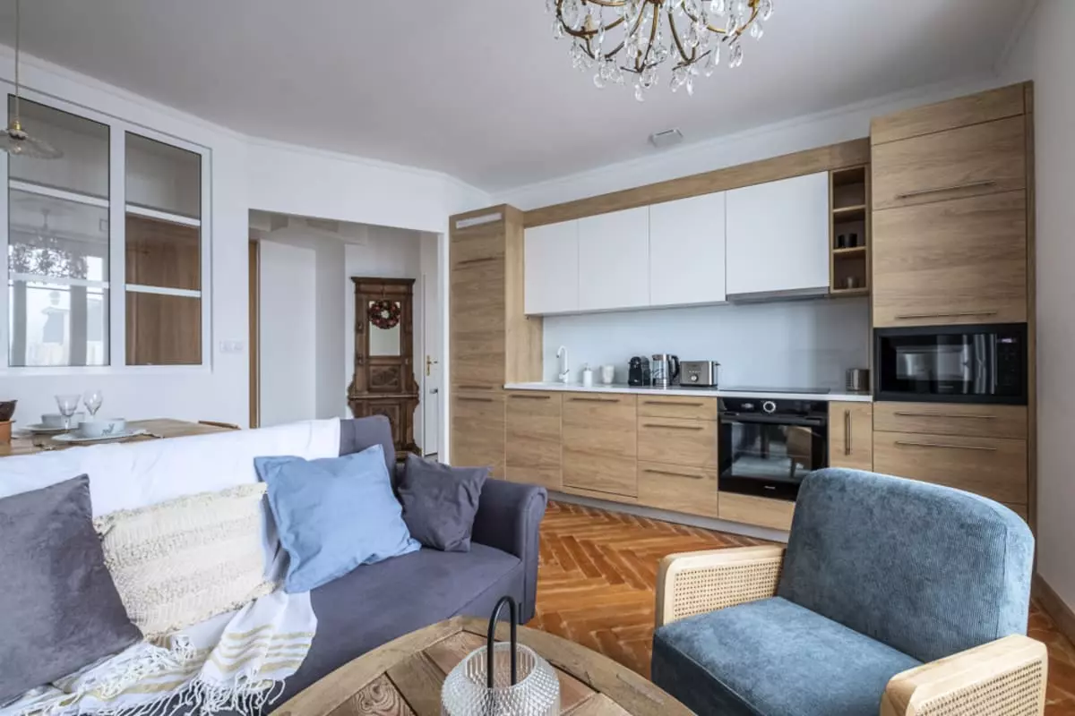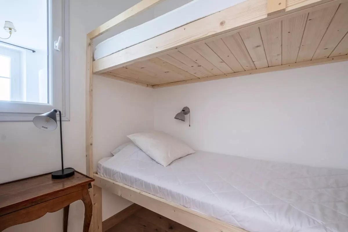 Situé en plein coeur de Chamonix, le logement est élégant, lumineux et est composé de deux chambres avec un lit double, d'une chambre "cabine" avec lits superposés, d'une salle de bain et d'un bel espace salon-salle à manger, et une cuisine ouverte tout équipée.