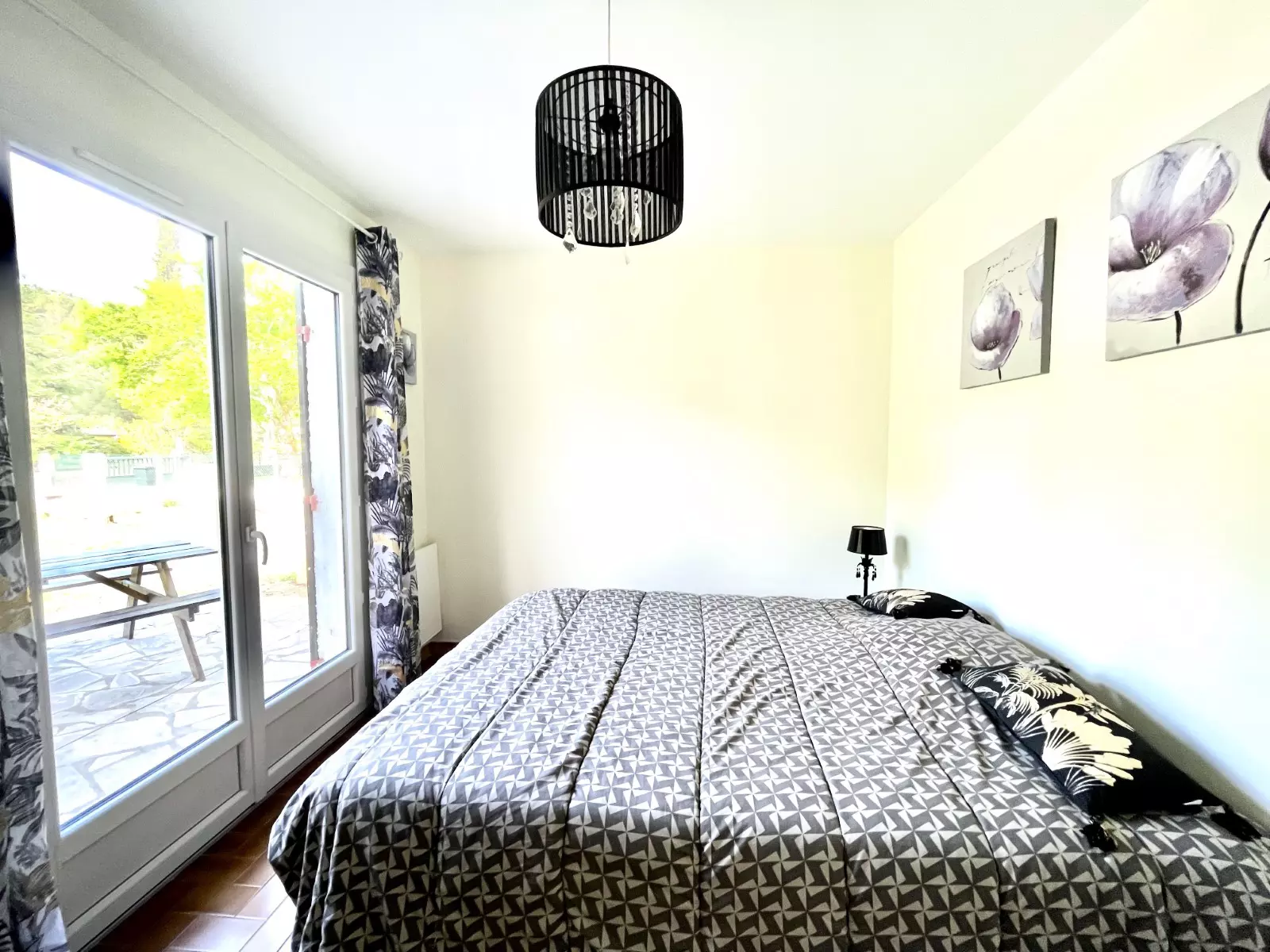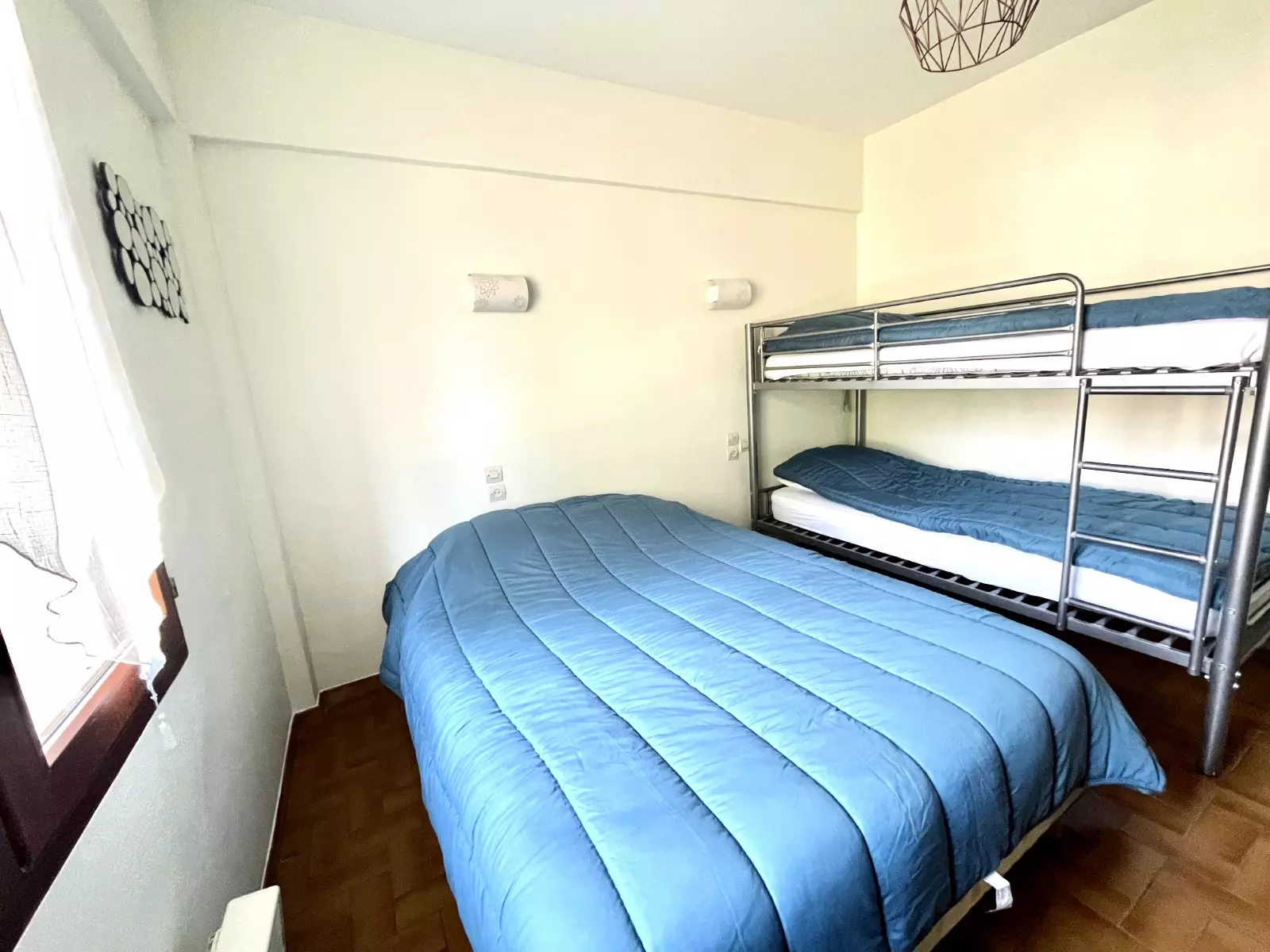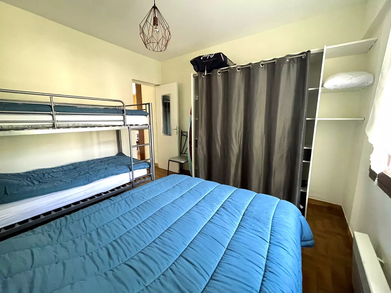 CHAMBRE 1 : 1 lit de 2 personnes (140 cm) + 2 lits de 1 personne (90 cm) superposés