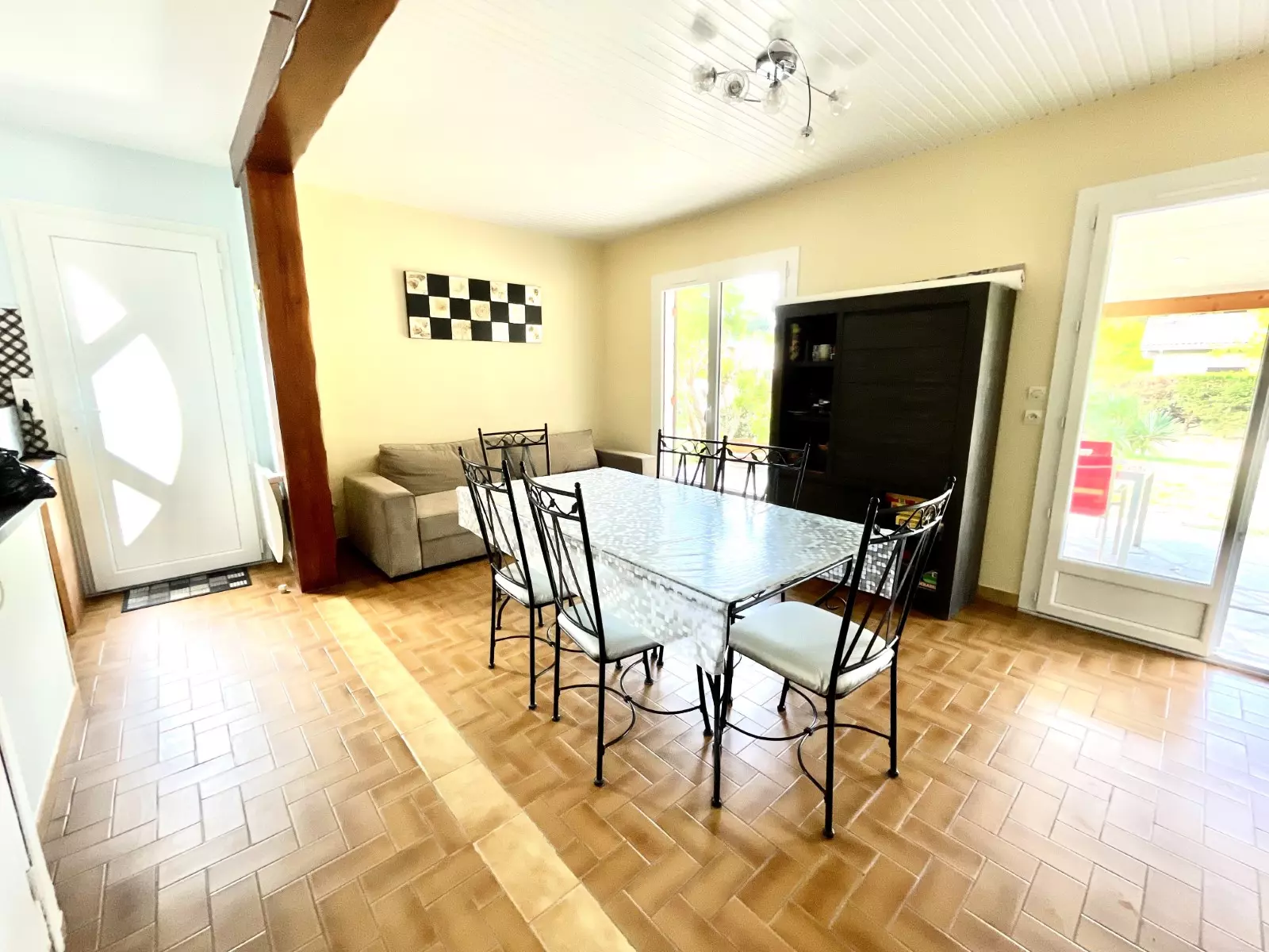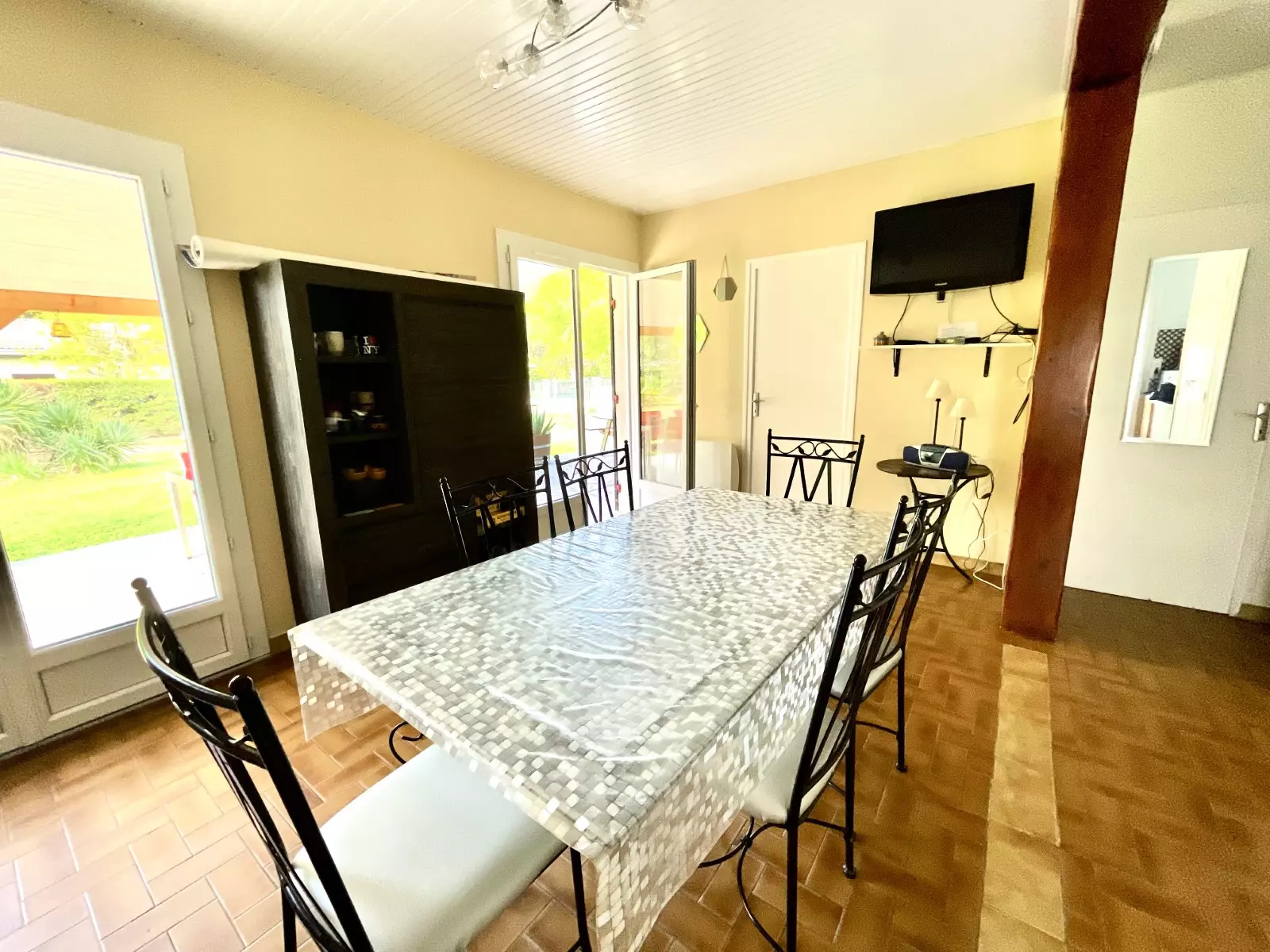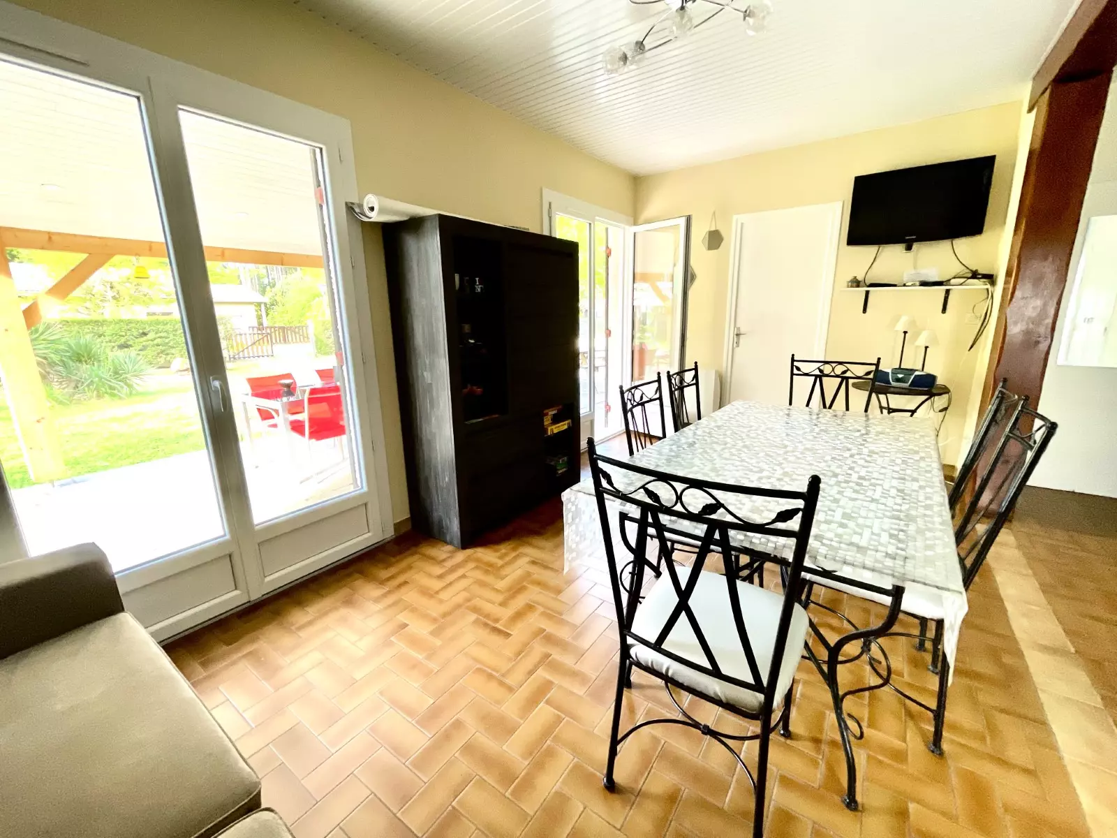 SÉJOUR : table - chaises - canapé - TV - rangements