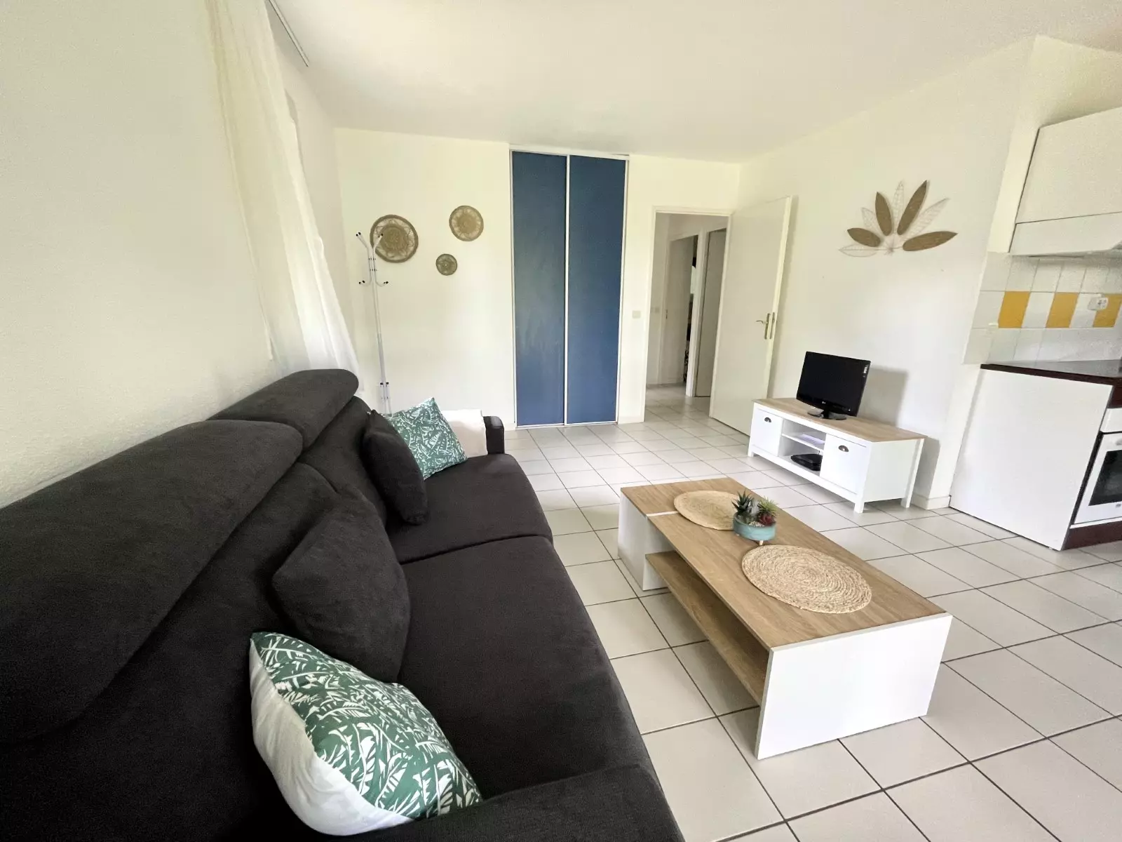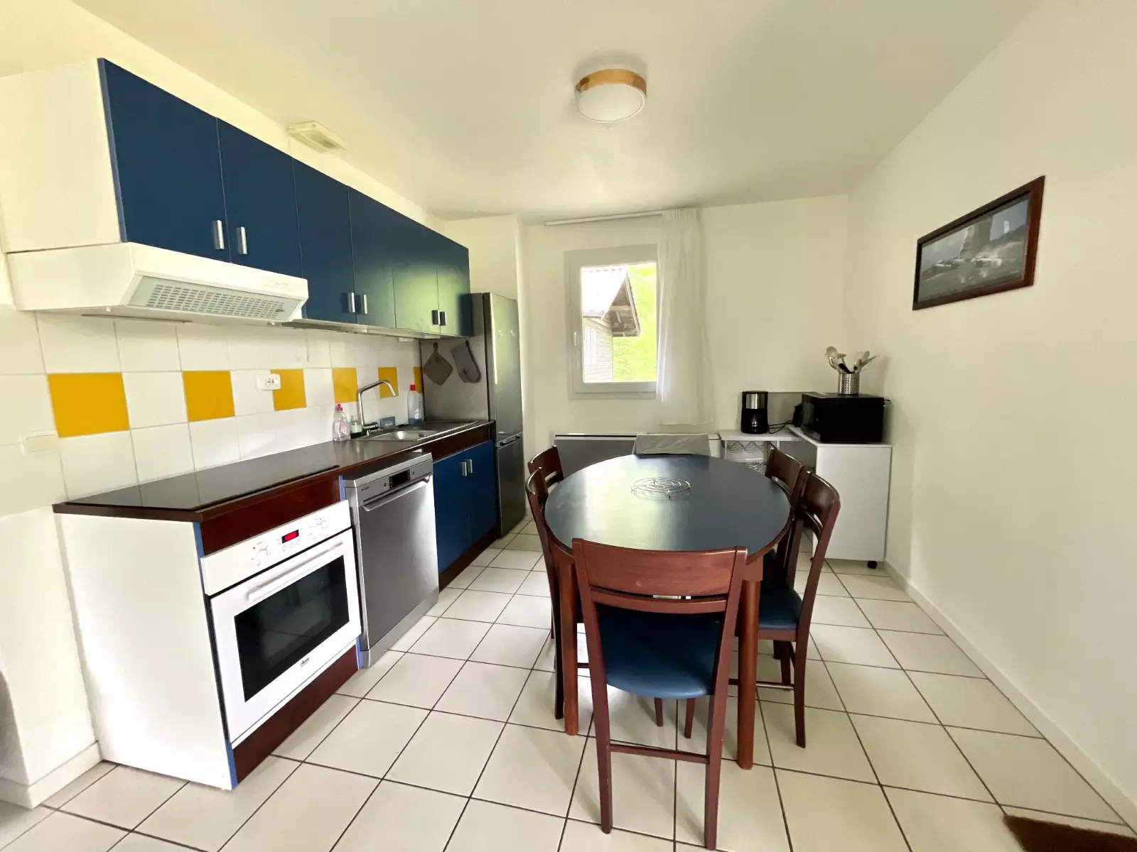 D'une pièce principale avec un Coin Repas et Cuisine équipée, Plaques de cuisson électriques, Hotte, Four traditionnel, Micro-ondes, Réfrigérateur/Congélateur, Lave vaisselle, Lave linge et Un Coin salon, un canapé-lit pour: 2 Personnes.