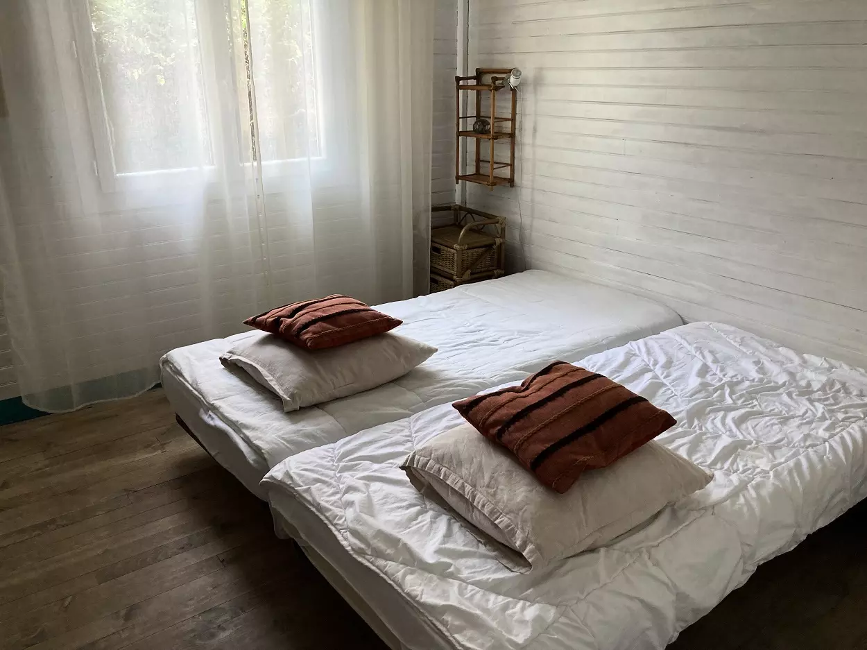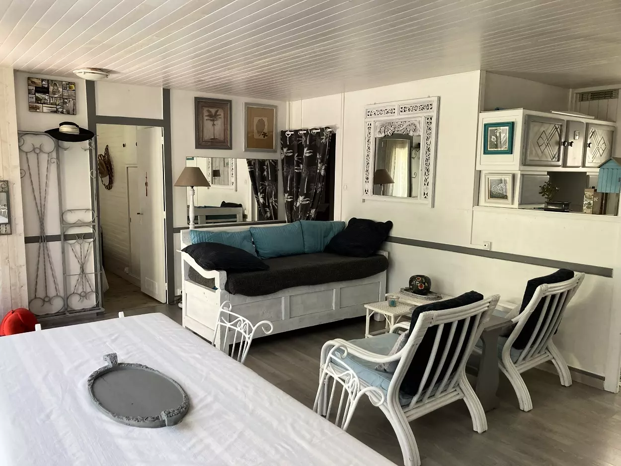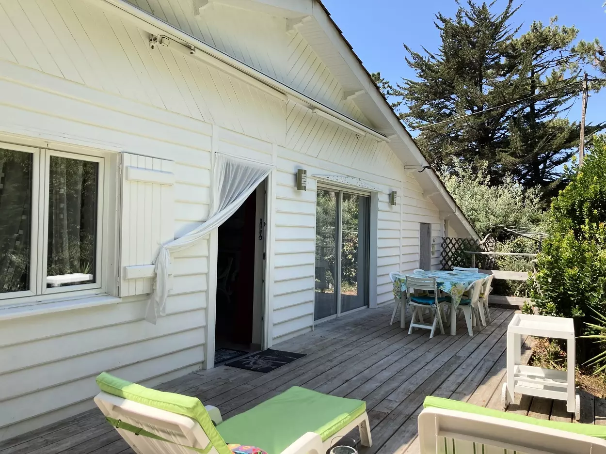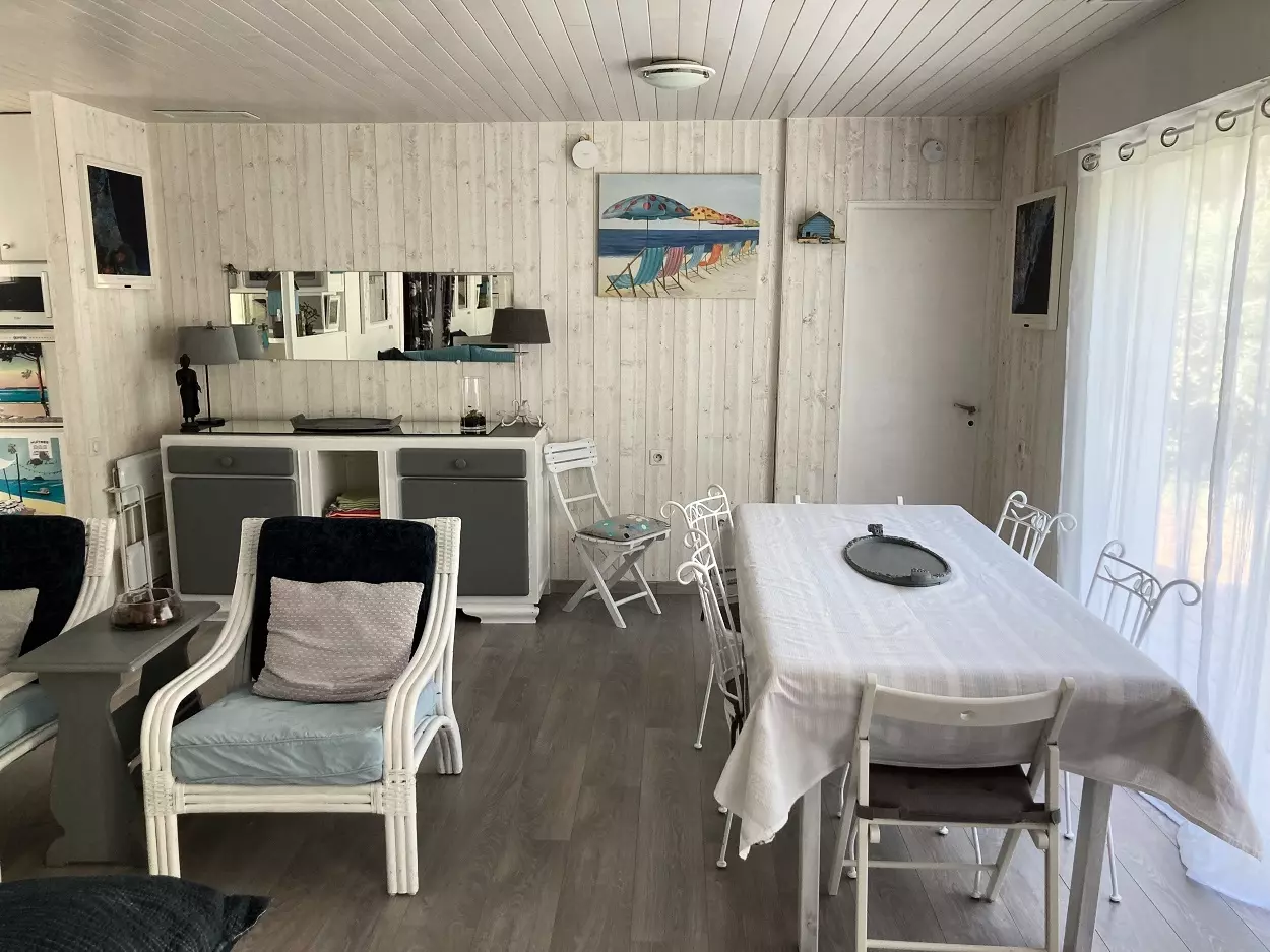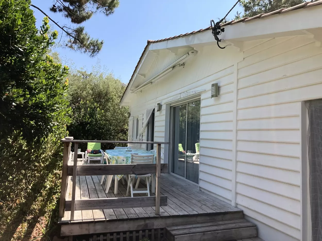 Chalet mitoyen (peut se louer avec la réf 225). Chalet situé entre le le Bassin et l'Océan. Il se situe à proximité du marché et des commerces. Il se compose un séjour, une salle à manger avec télévision qui donne sur terrasse. Un coin cuisine équipée avec un lave vaisselle et un lave linge. Le chalet dispose de trois chambres qui se compose d'un lit en 160, un lit en 180 et deux lits en 80, une salle de bain et un wc indépendant. Place de parking. Les animaux ne sont pas acceptés. Chalet vlimatisé.