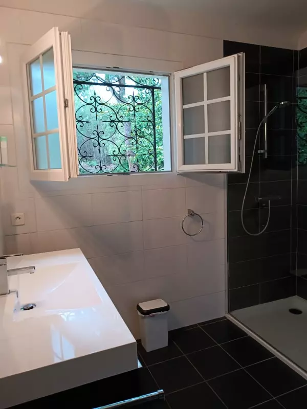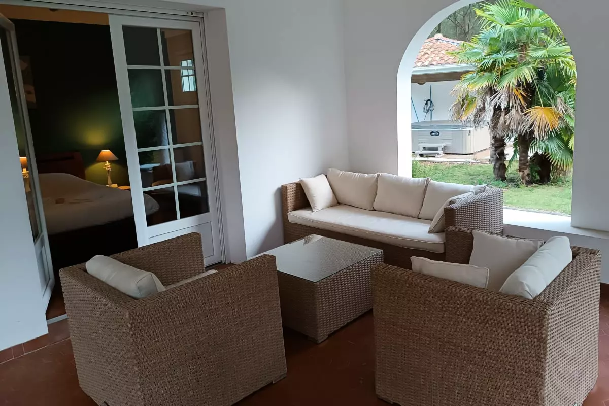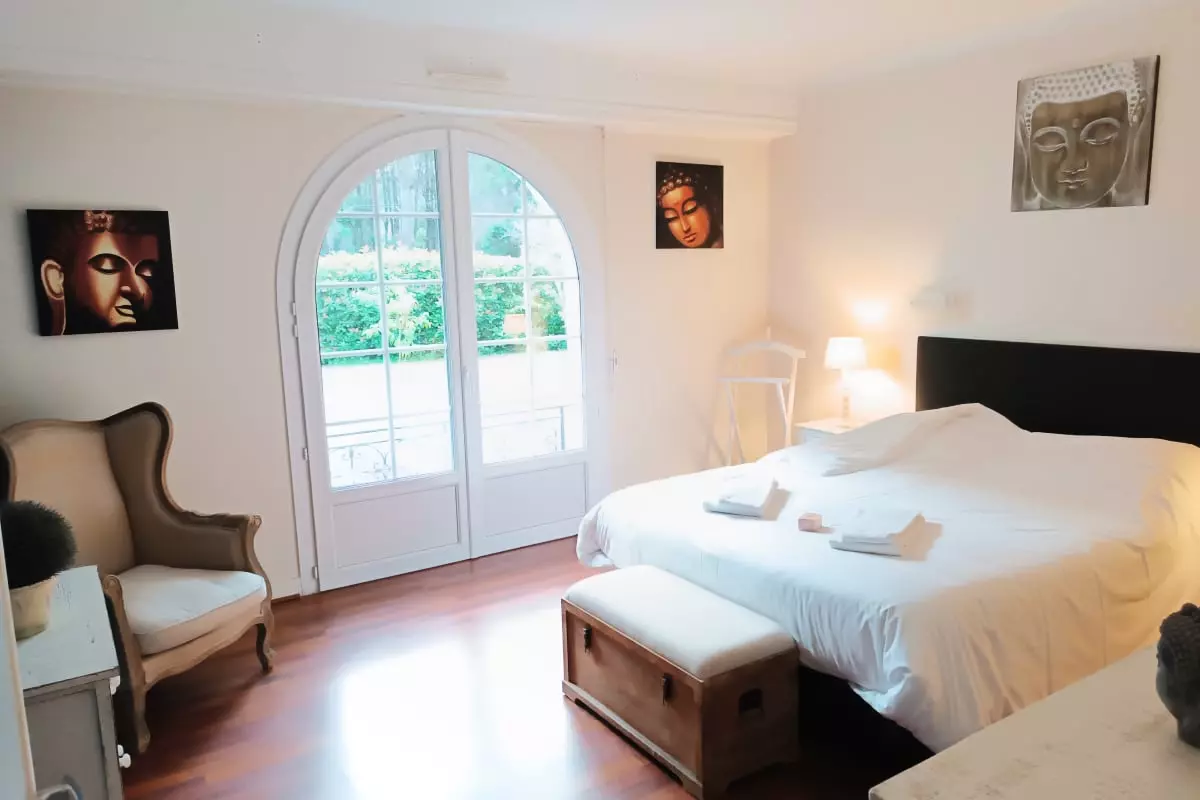 Aussi chaleureuse et bien aménagée, elle comprend cinq chambres avec cinq lits doubles, et 2 lits simples superposés deux salles de bains ; une cuisine toute équipée et un salon pour vous détendre après une intense journée. Trois chambres sont intégrées dans la maison principale, et 2 autres sont des studios indépendants : l'un en bord de piscine( un lit double et 2 lits simples superposés ), l'autre plus isolé dans le terrain (un lit double ) Les salles de douche et les WC sont dans la maison principale.