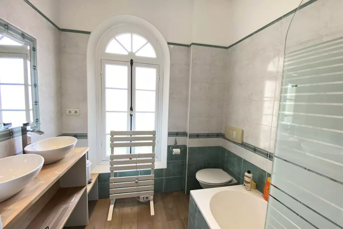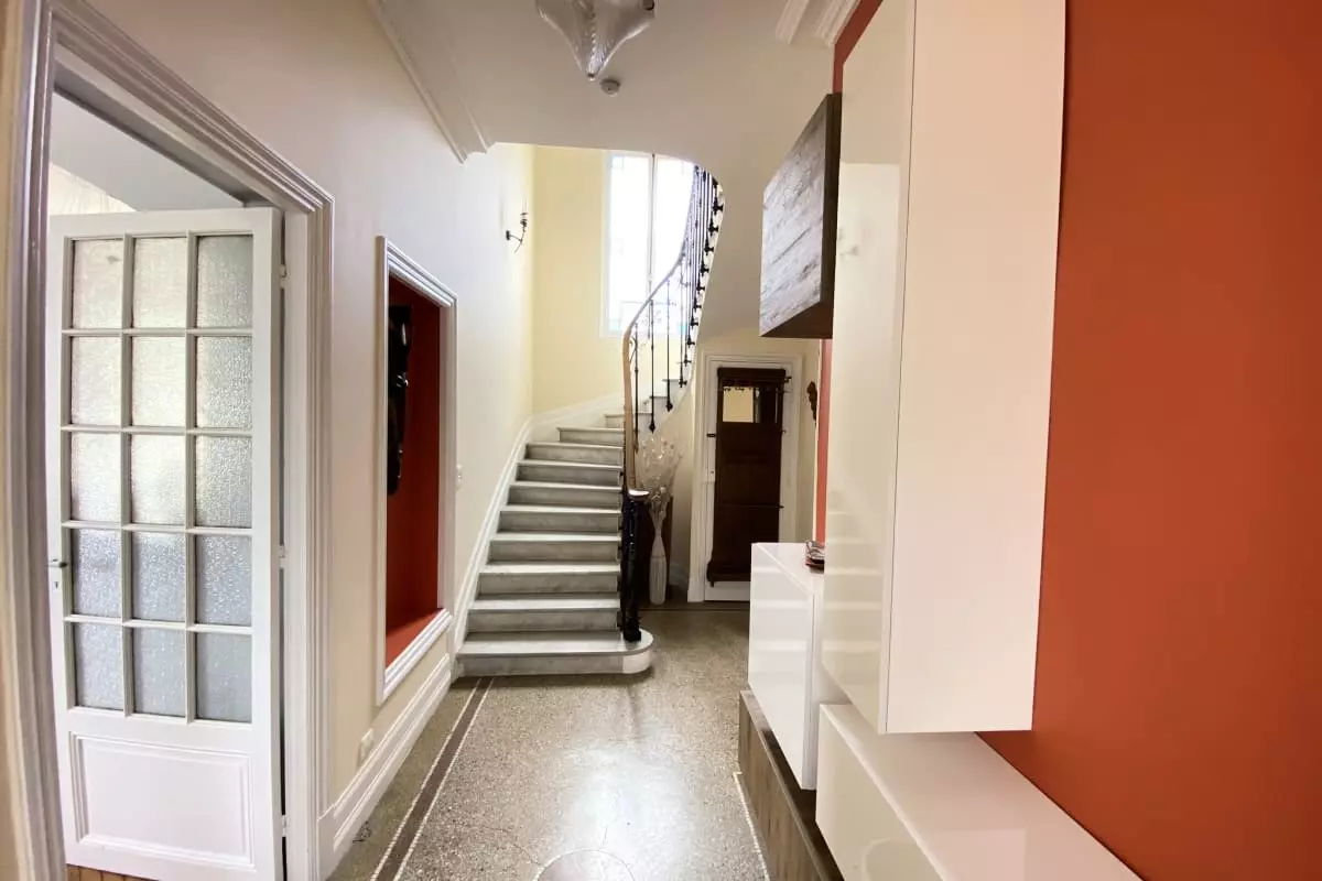 Un grand escalier vous amènera à la partie nuit. Il dessert un hall, 1 chambre parentale avec un lit de 160 X 200cm ayant sa salle d'eau, ainsi que 2 grandes chambres avec rangement et un lit de 160 X 200cm qui peuvent être séparés si besoin. Une salle de bain avec WC termine cet étage. Petit plus, vous aurez une vue sur la mer depuis deux chambres. Des commerces de proximités, (une supérette, une pharmacie et un fleuriste) et des transports en commun juste en face, vous faciliteront la vie. Il y a aussi un petit jardin d'enfant à 2 mins à pied.