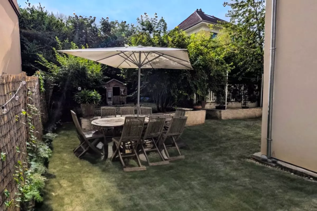 • un jardin spacieux doté d'une table à manger, d'un petit salon et d'un barbecue pour des instants conviviaux en plein air,