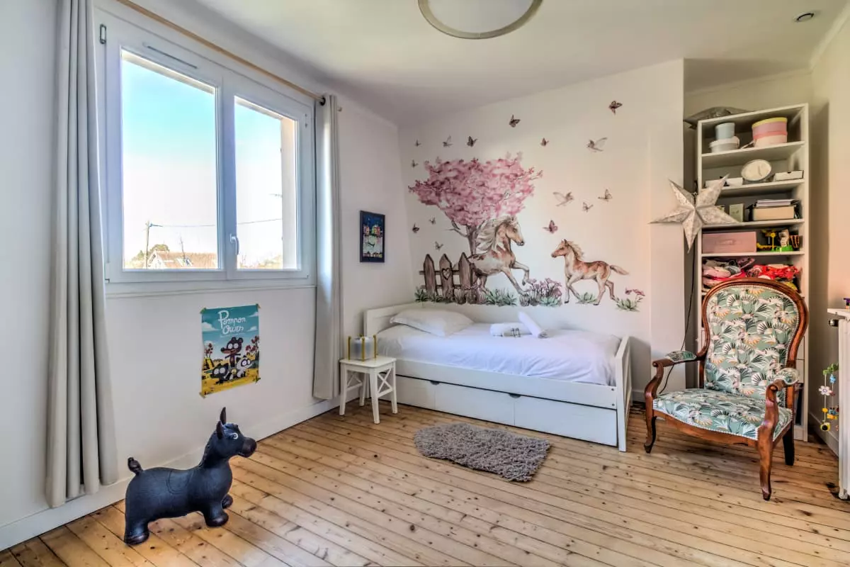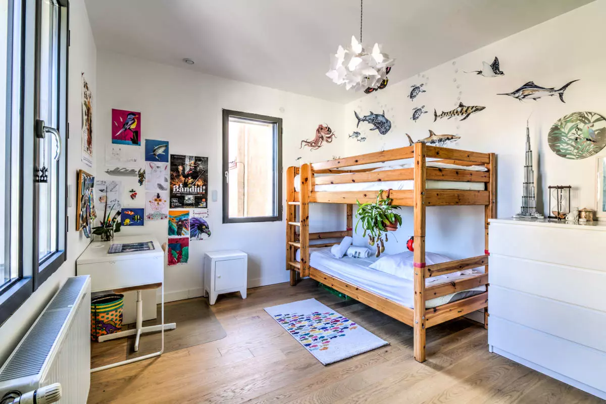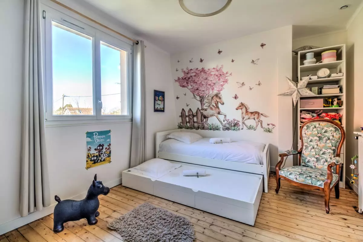 • une deuxième chambre avec des lits simples en gigogne (deux couchages),