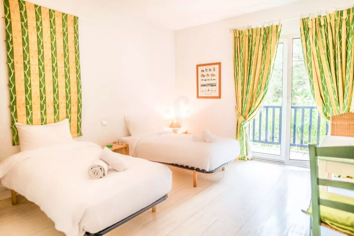 1 chambre avec 2 lits en 90 (ou 180) et sa salle d'eau+ Un WC indépendant sur palier (optionnel pour 14 personnes)