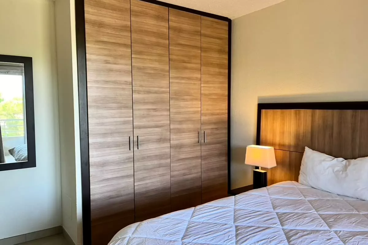 ArrayIl fait 38 mètres carrés, comprend une chambre avec plusieurs rangements et peut accueillir jusqu'à quatre personnes.