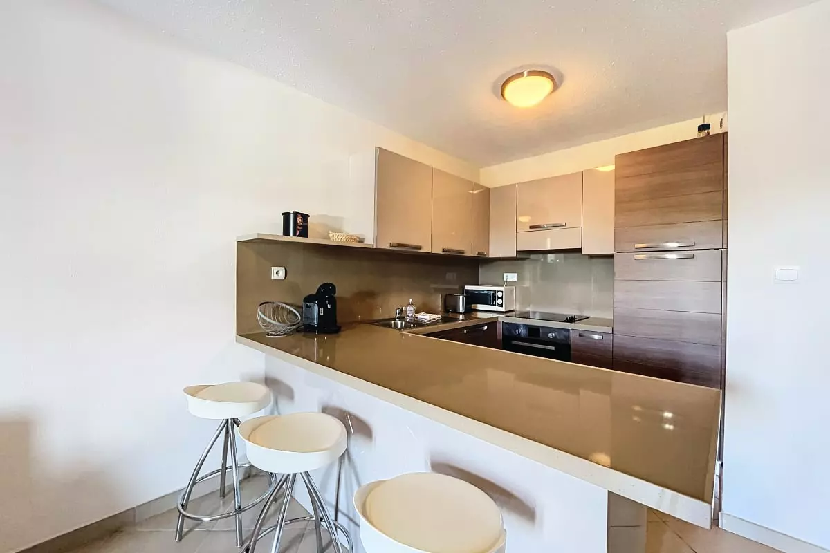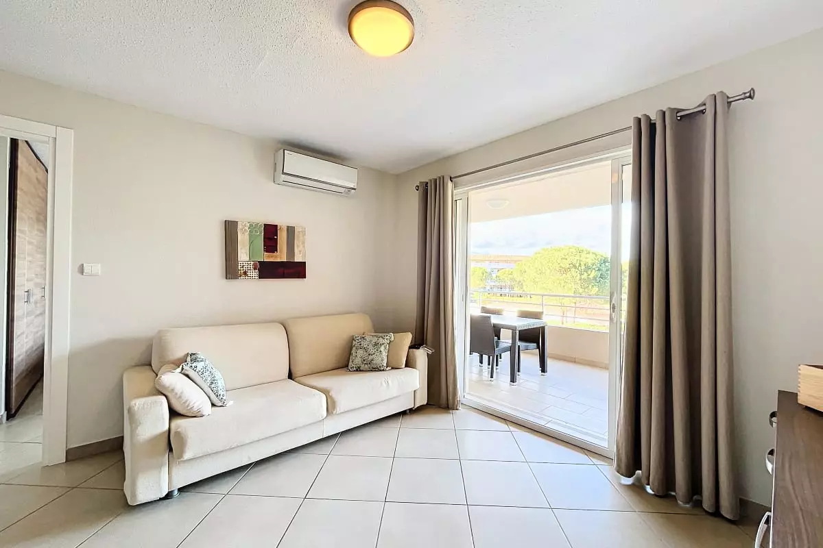 Accès à la piscine de la résidence non chauffée et ouverte en saison estivale seulement.