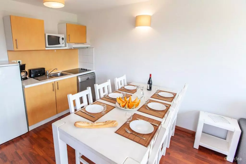 L'équipement comprend une télévision, un salon de jardin, des plaques vitrocéramiques, un réfrigérateur, un grille-pain, une hotte, un lave-vaisselle, un micro-ondes, une cafetière électrique et une bouilloire.