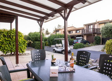 Votre logement est équipé d'une kitchenette avec un micro-ondes, la télévision, une terrasse de 12 m² ou jardinet avec salon de jardin.