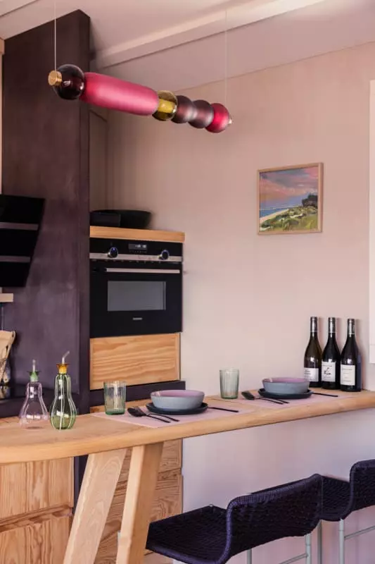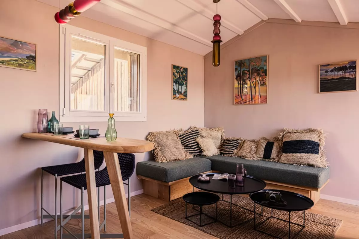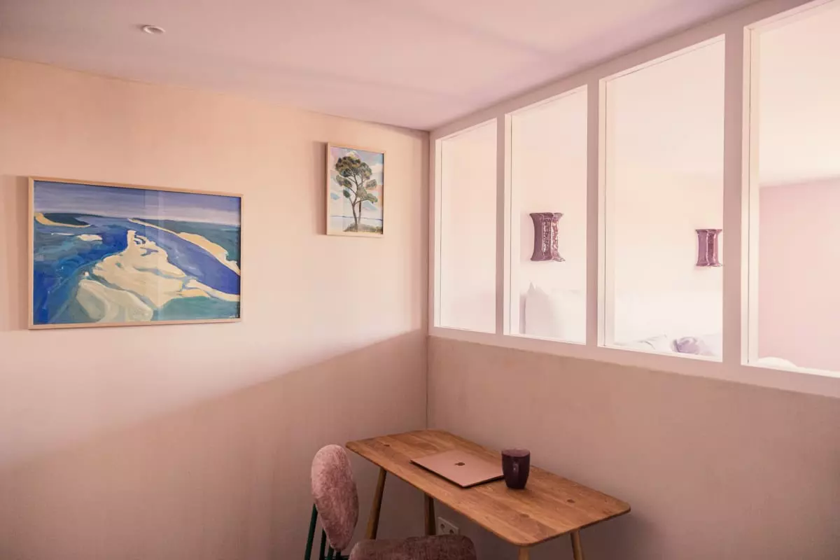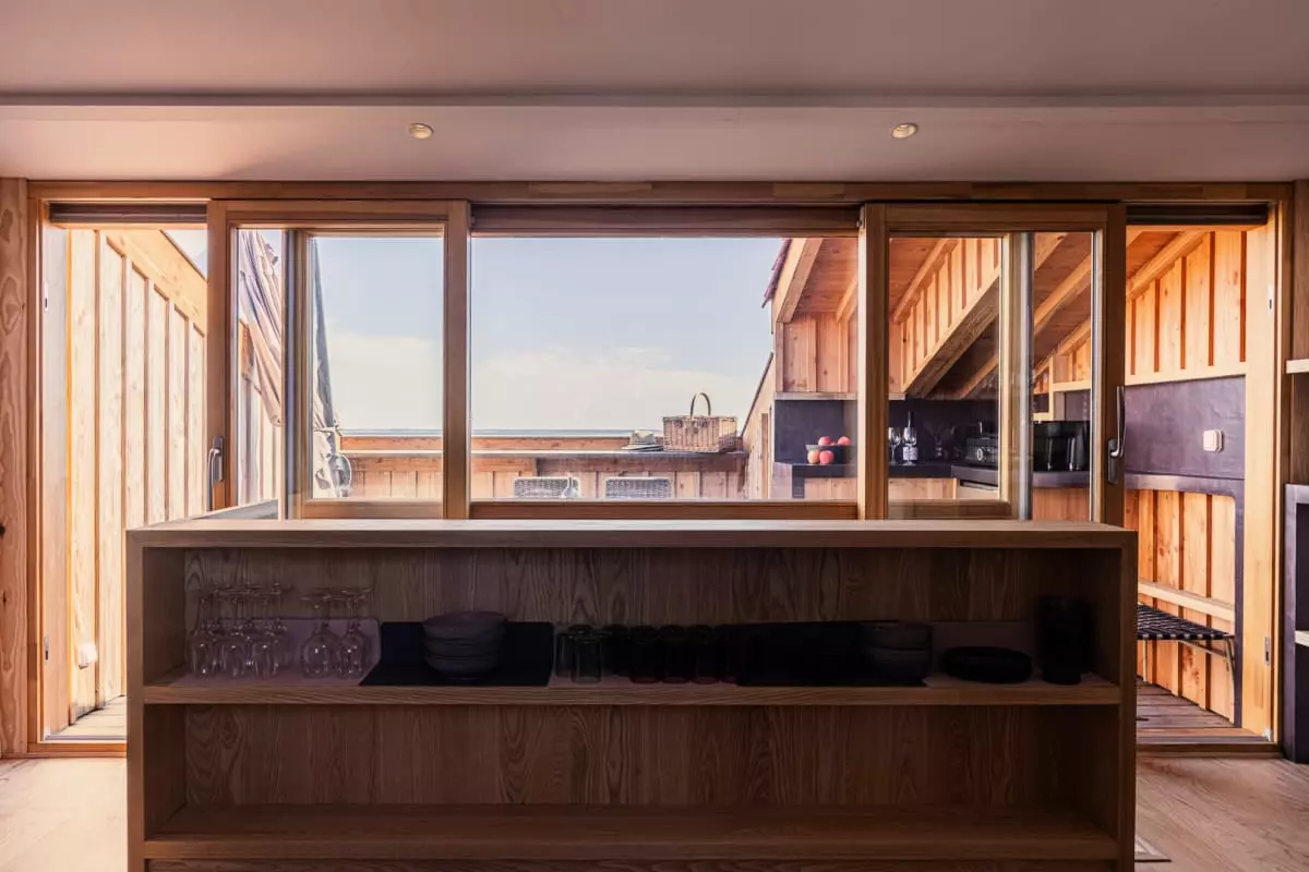 L'appartement Yndo, imaginé par Agnès Guiot du Doignon, une figure marquante du design et de l'architecture d'intérieur, offre également une terrasse panoramique offrant une vue imprenable sur tout le bassin d'Arcachon, l'île aux oiseaux et la majestueuse Dune du Pilat en arrière-plan. C'est l'endroit idéal pour savourer un café le matin, déguster un repas en plein air ou simplement admirer le paysage à couper le souffle.