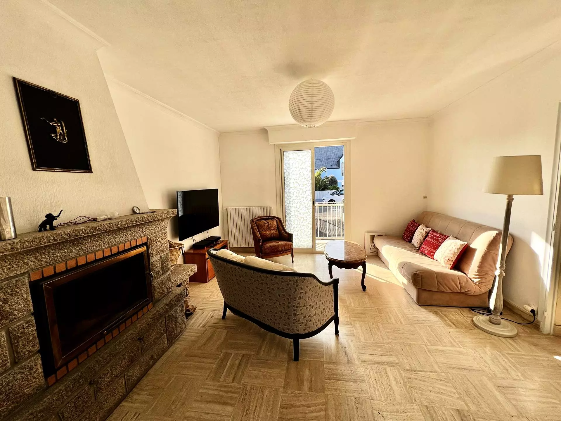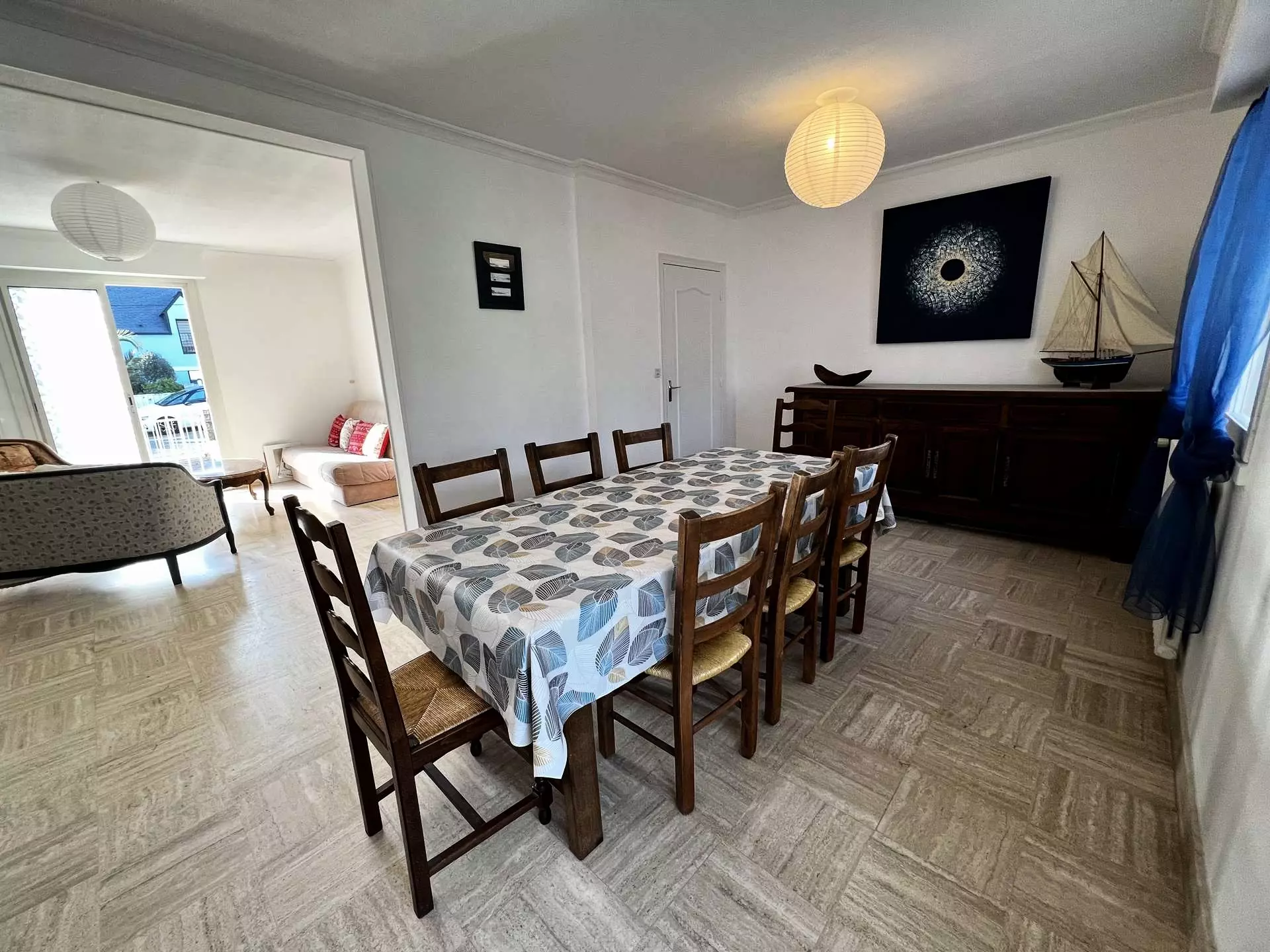 Double salon-séjour avec télévision, accès Wifi gratuit, cheminée et espace dinatoire pour 8 convives, ouvrant sur