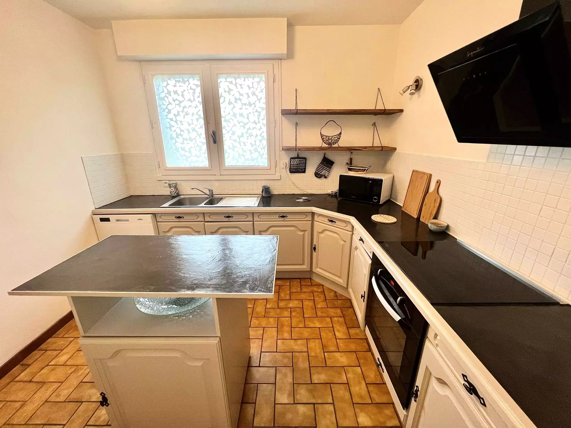 Cuisine indépendante aménagée et équipée (lave-vaisselle, four, réfrigérateur, plaques de cuisson induction, hotte, micro-ondes, cafetière à filtre, bouilloire, grille-pain, barbecue)