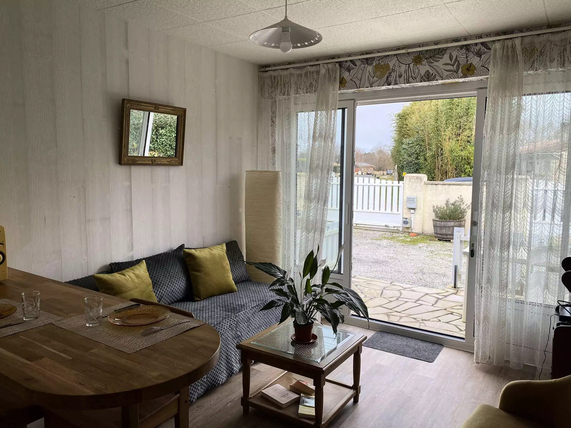 A proximité du centre ville de carcans au calme et à 10 min en voiture du Lac de Maubuisson. Logement de 45 m² mitoyen à la maison principale avec 1 pièce à vivre avec kitchenette toute équipée ouverte et terrasse , une chambre avec 2 lits simples de 80 cm, une salle d'eau neuve avec WC. Accès parking de la maison.