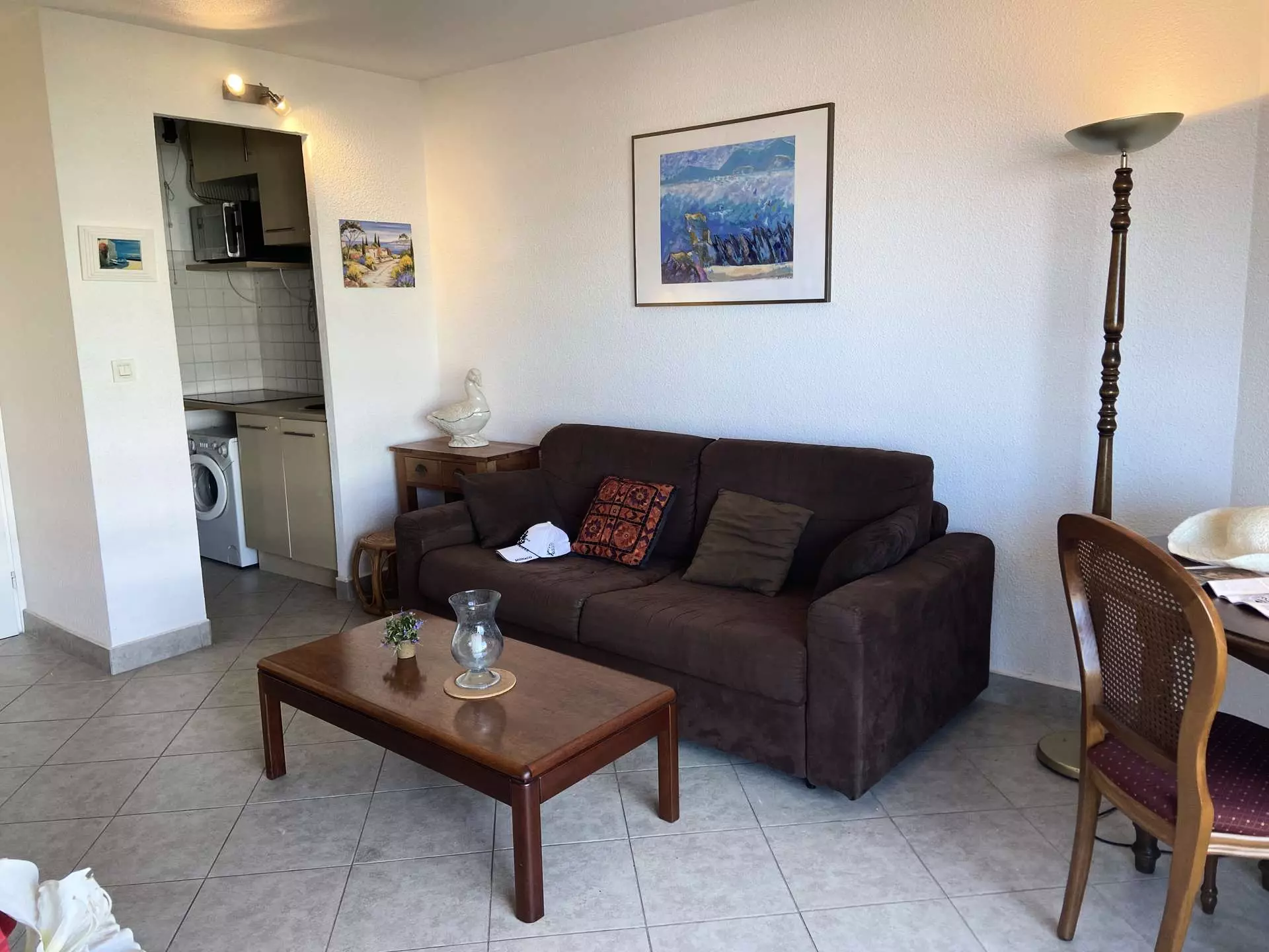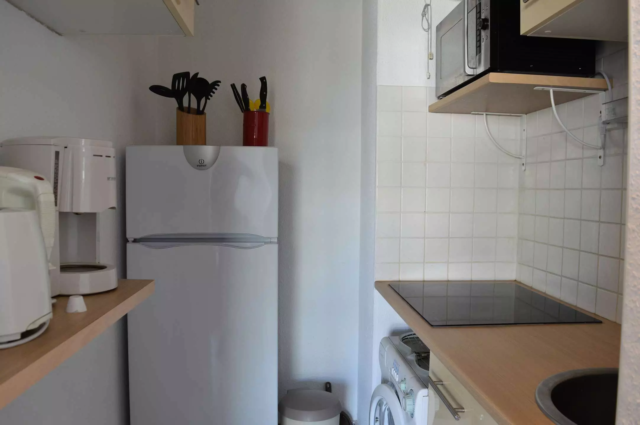 En étage élevé, cet hébergement de vacances comprend une entrée, un séjour avec un canapé convertible 2 places, , un coin cuisine équipé, une chambre avec un lit 2 places une salle d'eau et un WC indépendant.