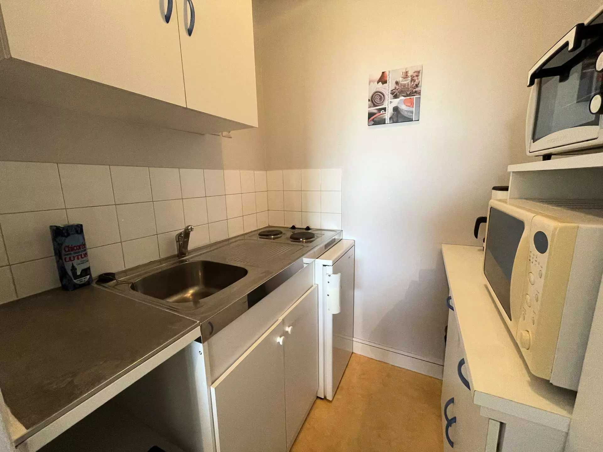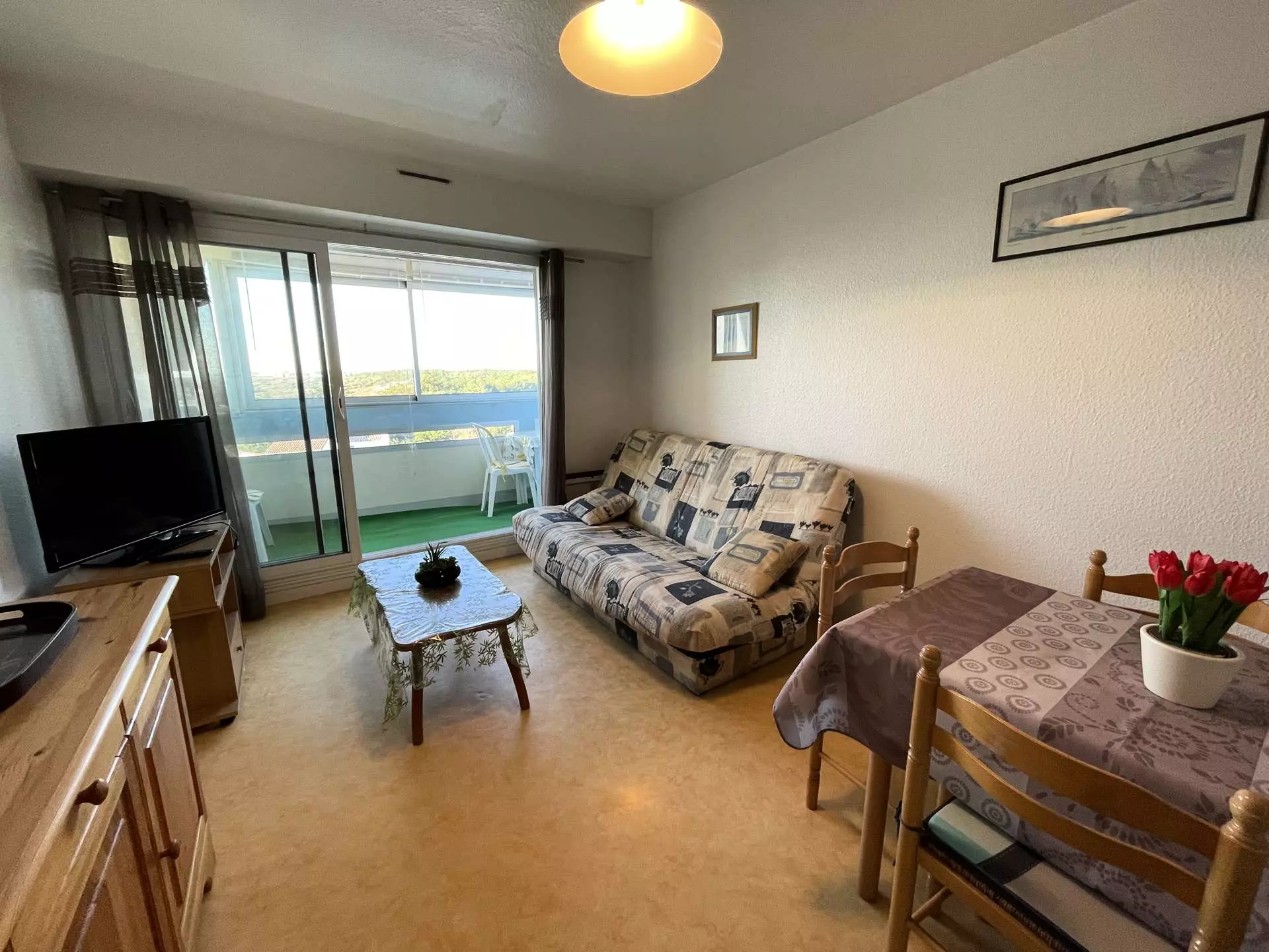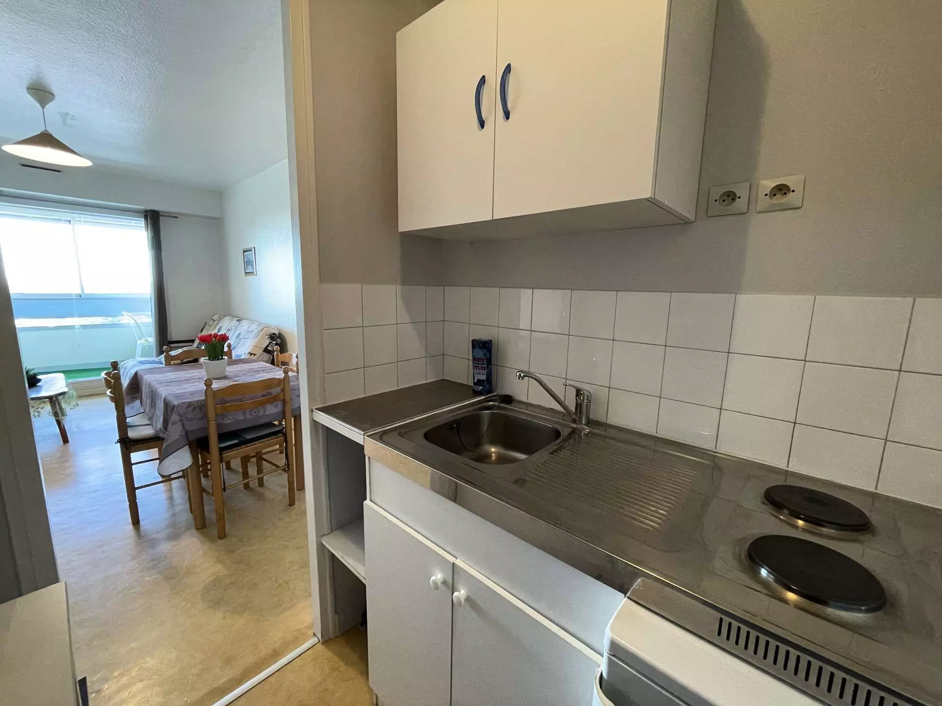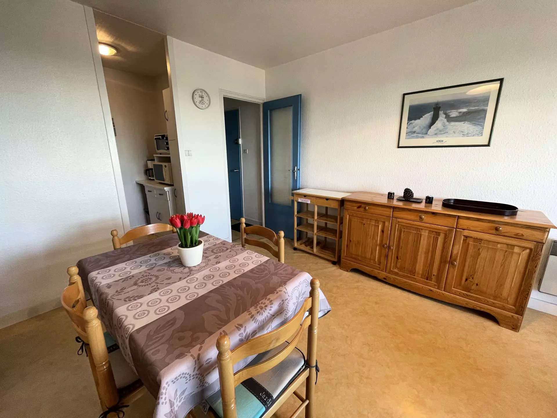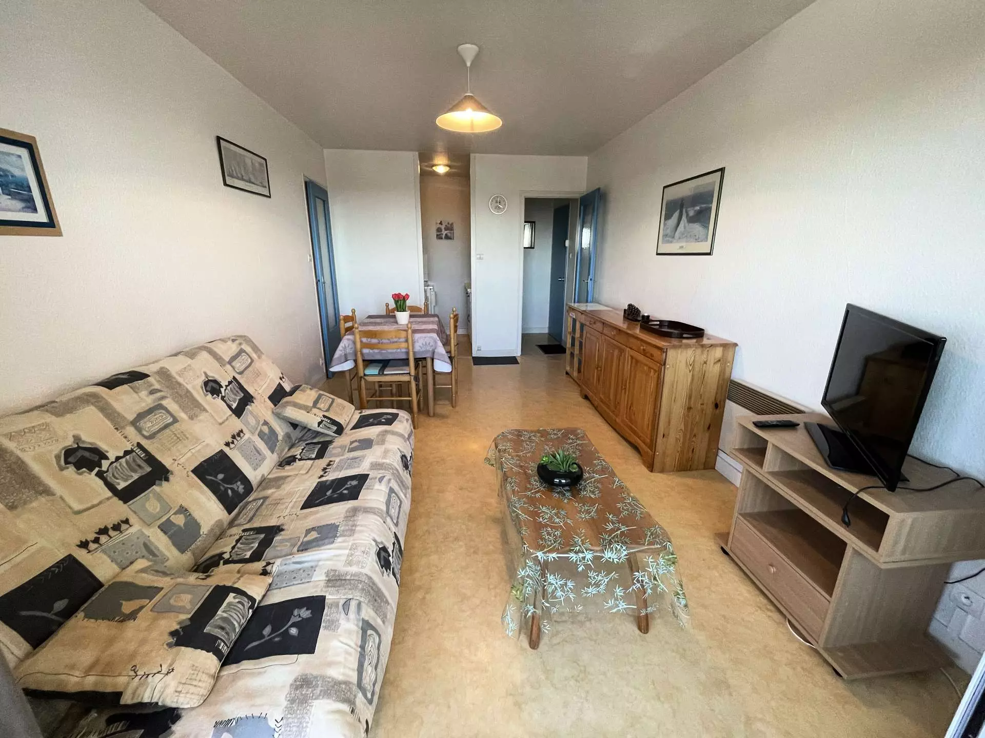 Cet agréable appartement de vacances, situé au 6ème et dernier étage avec ascenseur, comprend un séjour avec canapé convertible 2 places et télévision, un coin cuisine équipé (four électrique, micro-ondes), une chambre avec 2 lits une place (90), une salle d'eau avec lave-linge, un wc indépendant.