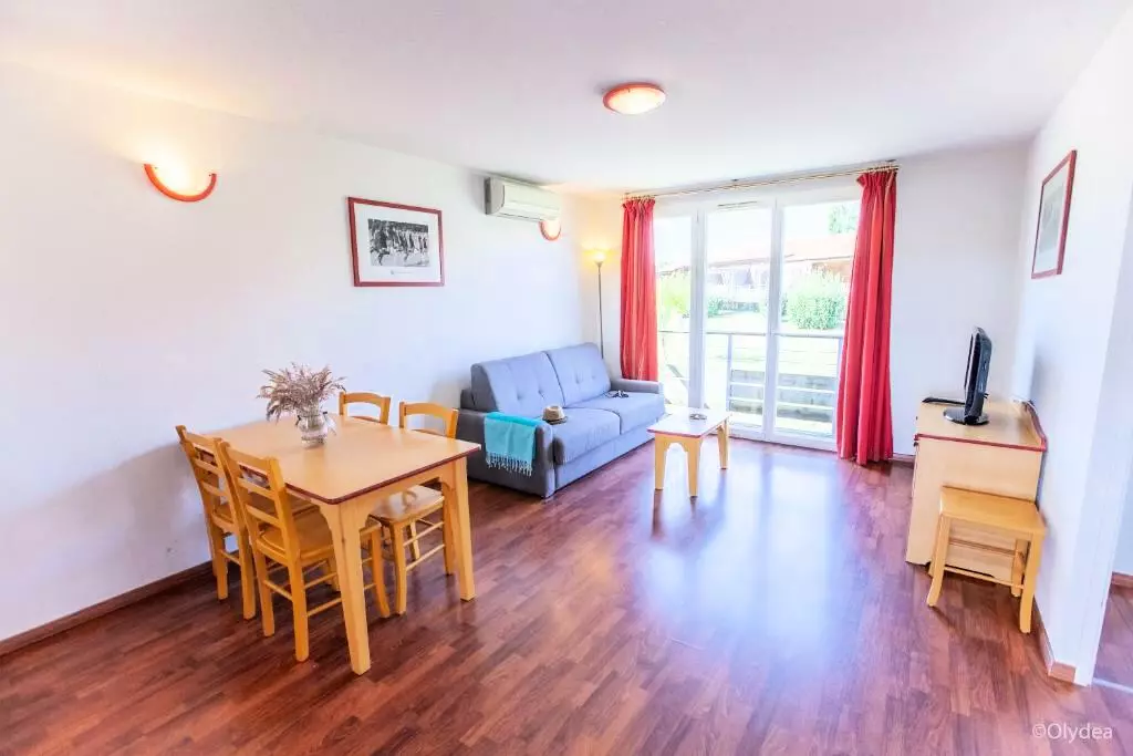 Séjour avec canapé-lit convertible pour 2 personnes.
