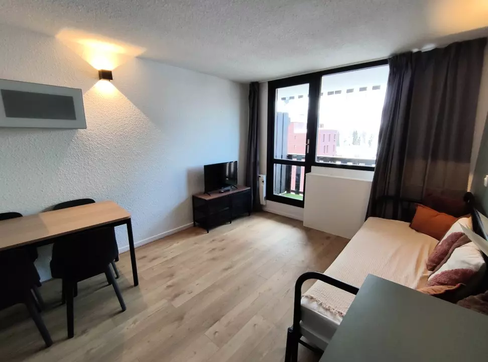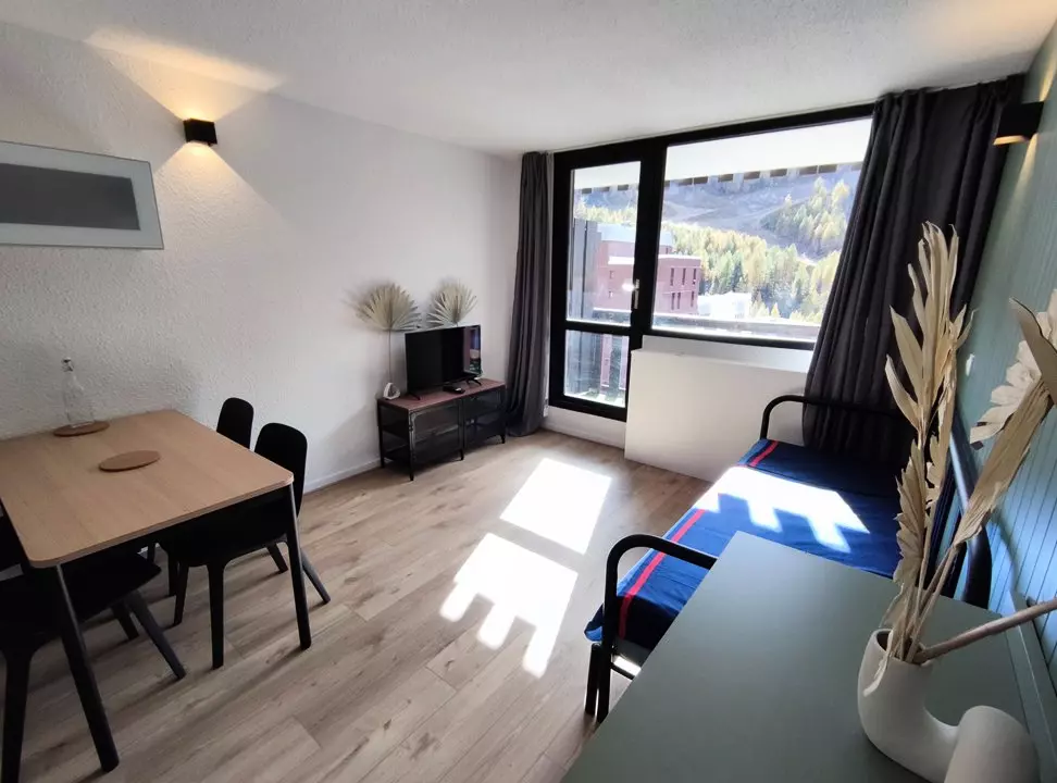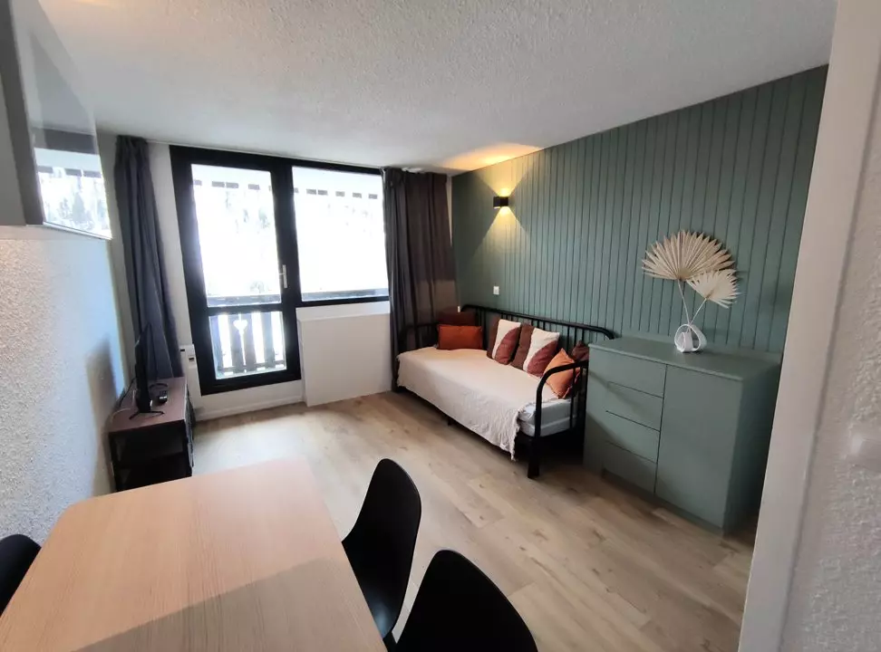 ADRI517 2* Studio entièrement rénové situé à l'entrée de la station avec emplacement de parking extérieur. Accès à quelques pas de la galerie marchande avec ses commerces et l'Ecole de Ski. Accès aux pistes de ski à 100 m sur le Front de Neige.