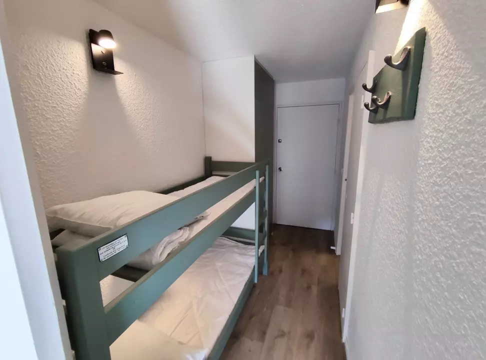 1 banquette lit 2 places, 2 lits superposés (réservés aux enfants, ne conviennent pas aux adultes). Salle de bain et WC. Balcon sud avec mobilier jardin. Appartement non fumeur. Pas d'animaux. Pas d'internet.