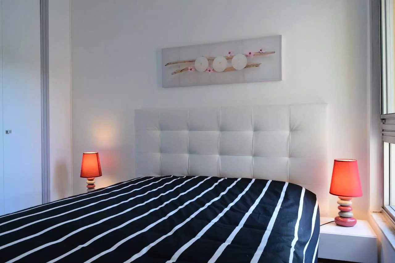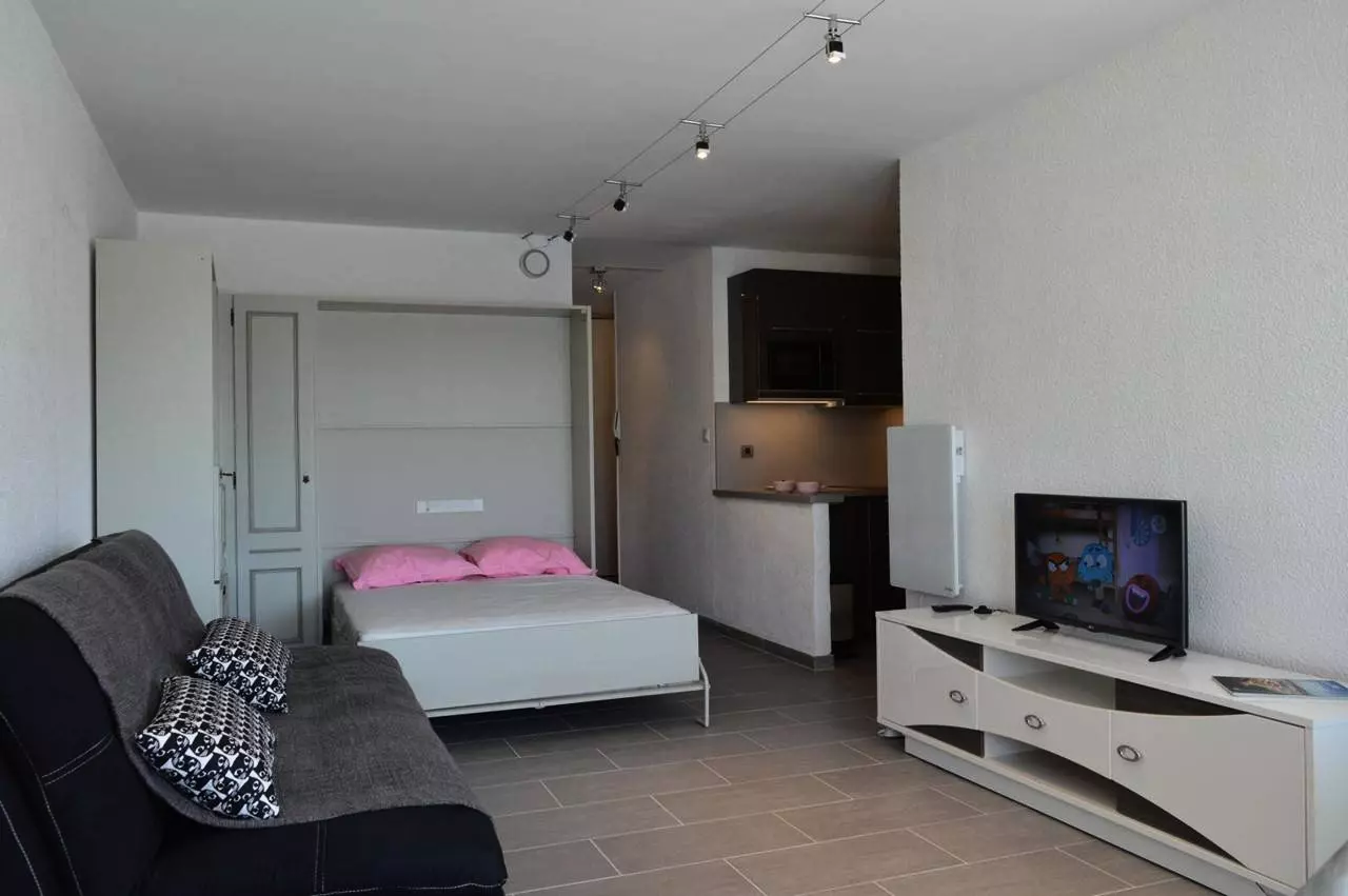 Cet appartement de vacances, situé au 2ème étage sans ascenseur, comprend un séjour avec un canapé convertible 2 places, un lit escamotable 2 places et télévision écran plat, une chambre avec 1 lit 2 places donnant côté parking, un coin cuisine équipé ainsi qu'une une salle de bain avec WC séparés.