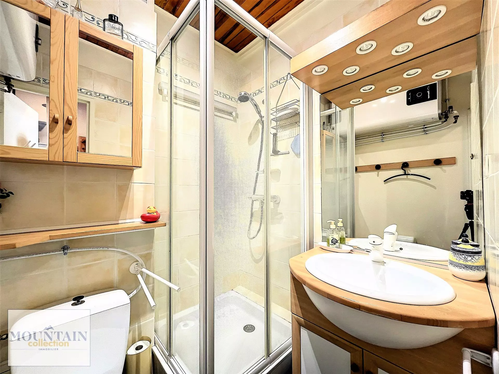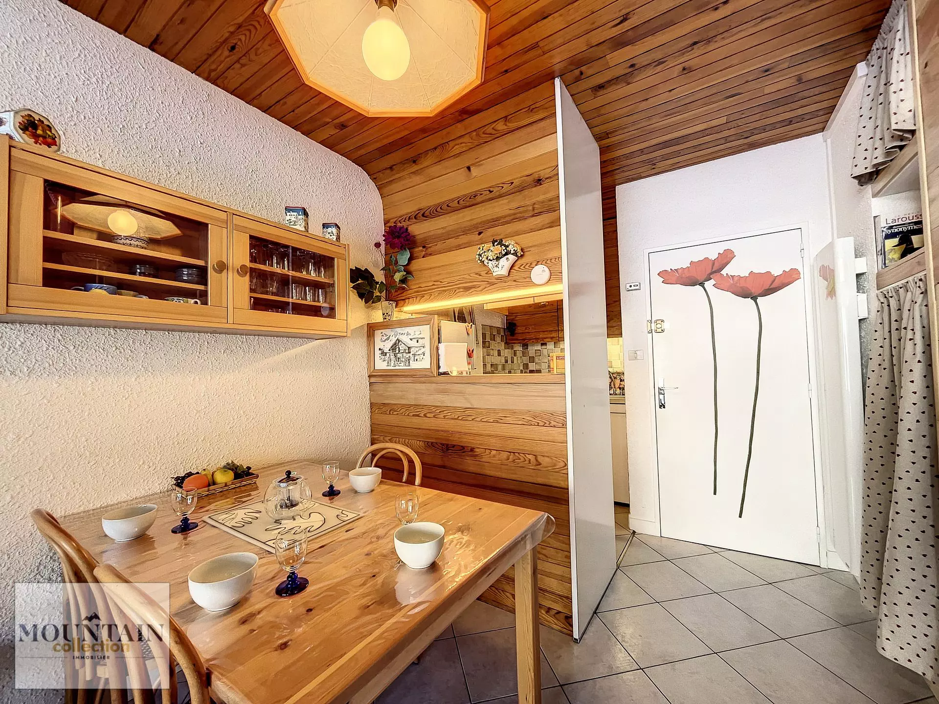 Le coin kitchenette est équipé de 2 feux vitro céramique, lave vaisselle, frigo top, cafetière Nespresso, bouilloire, grille pain, appareil à raclette.