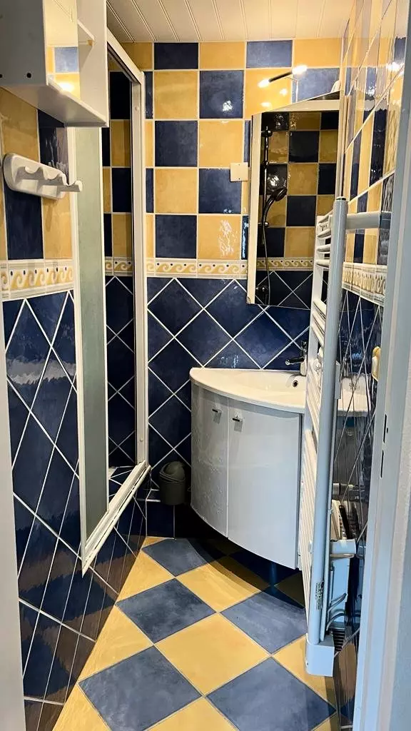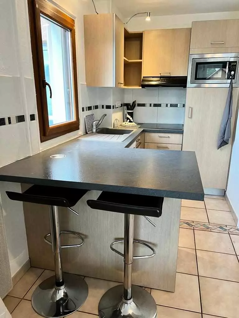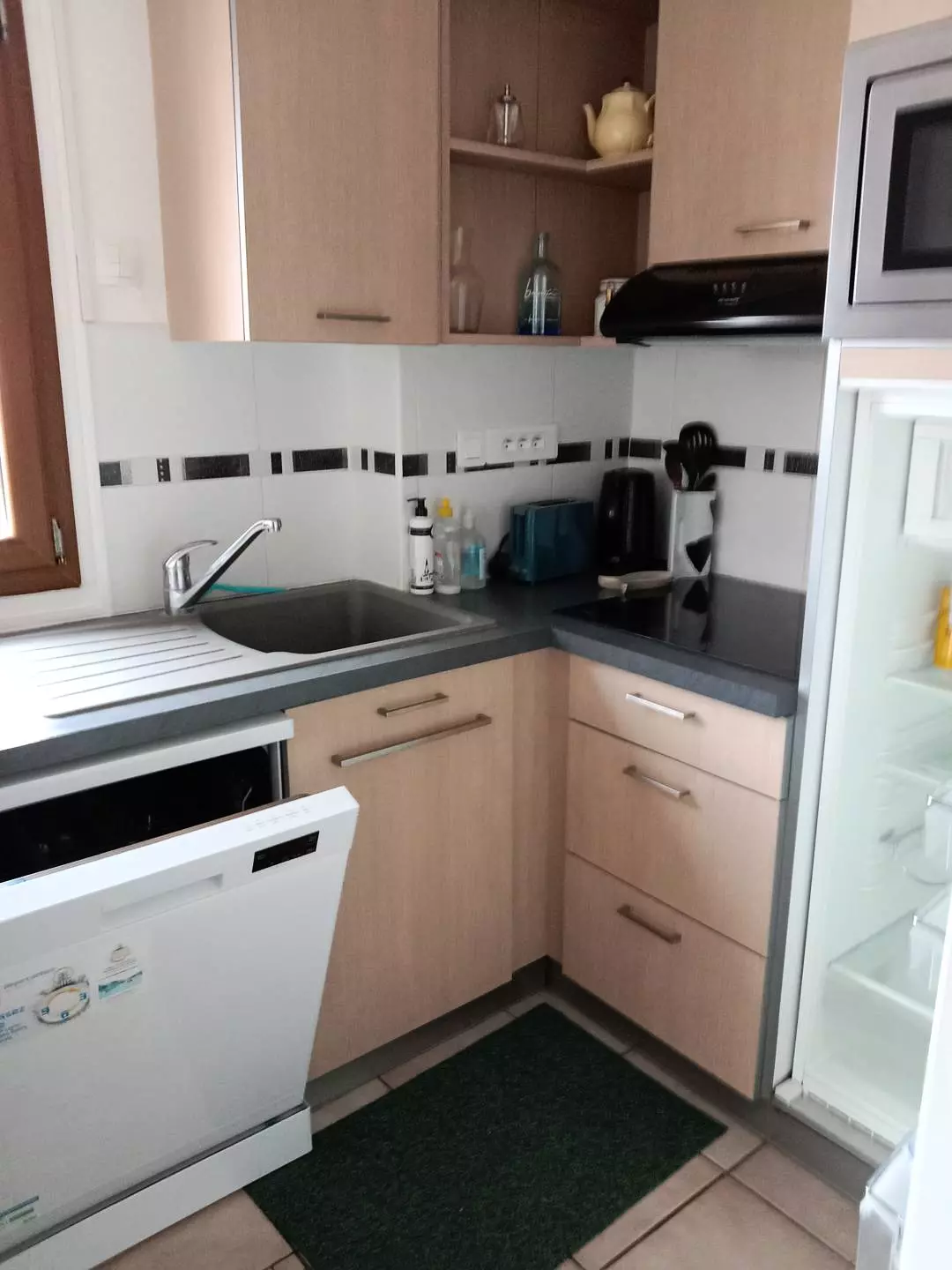Ce T2 dispose du WIFI et d'une piscine collective et se compose : D'une entrée, salle d'eau avec douche et WC séparé, salon avec TV équipé d'un coin cuisine moderne et fonctionnel (réfrigérateur-congélateur, four multifonctions, plaque induction, micro-ondes, cafetière, lave-linge, lave-vaisselle et rangements ...)