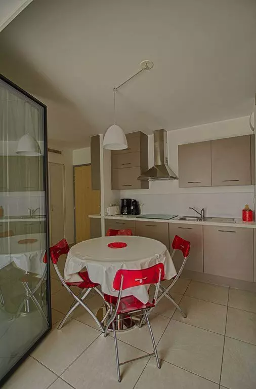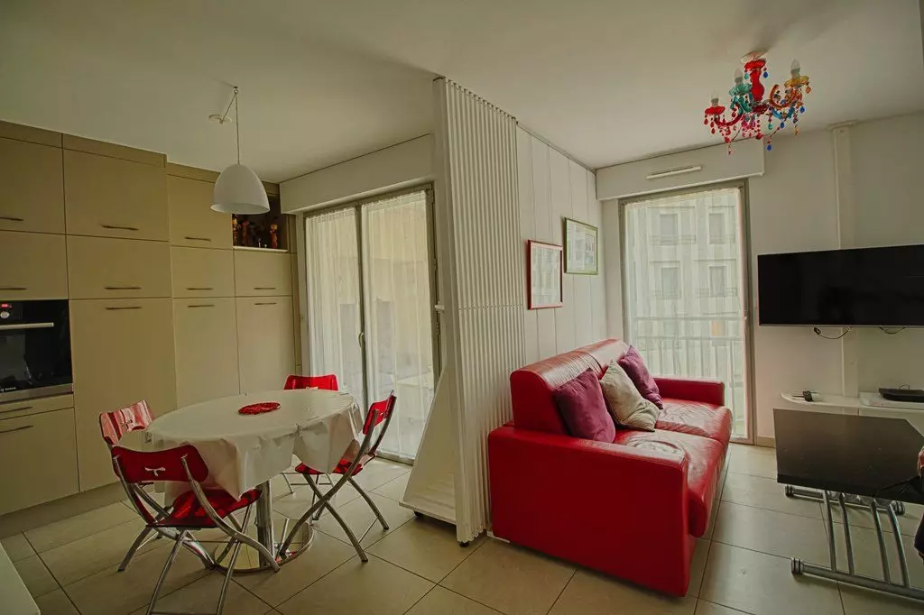 L' appartement proposé est composé comme suit: une entrée avec rangements, une pièce principale climatisée disposant d'une cuisine équipée ouverte sur le salon doté d'un lit escamotable pour 2 personnes, et salle d'eau avec WC.