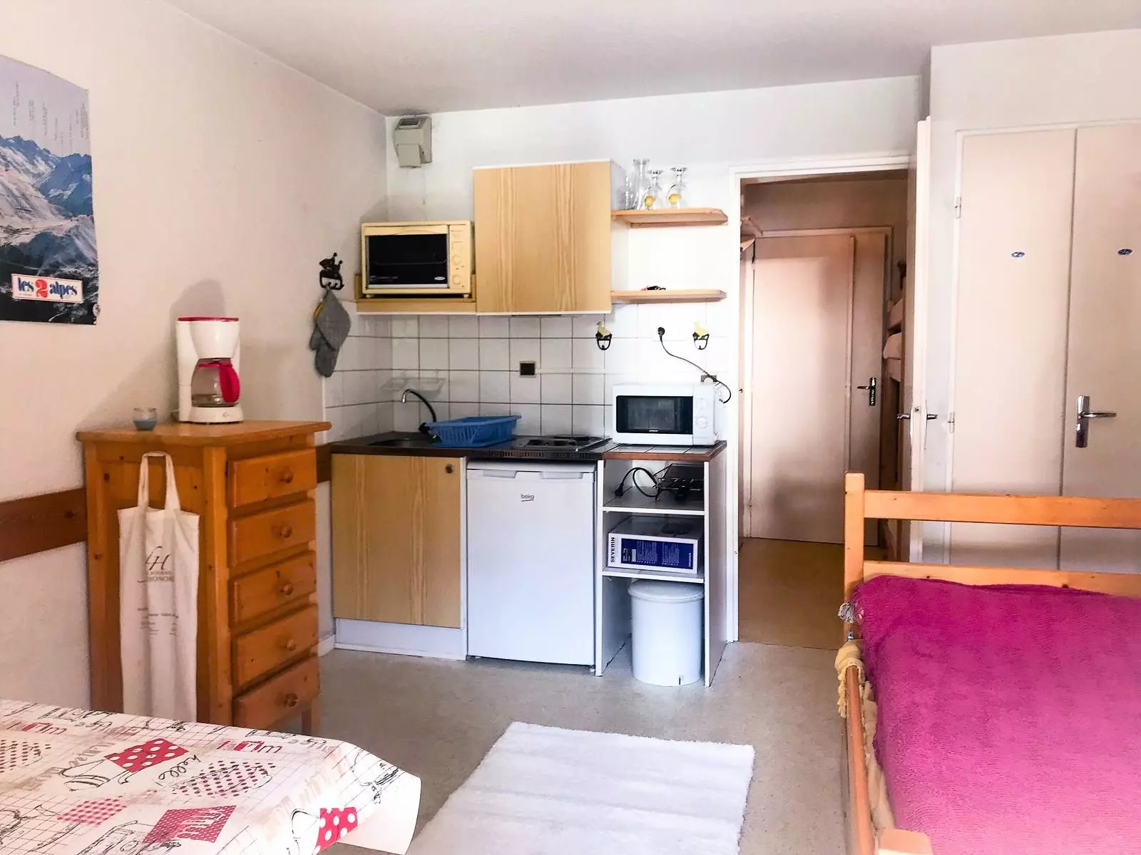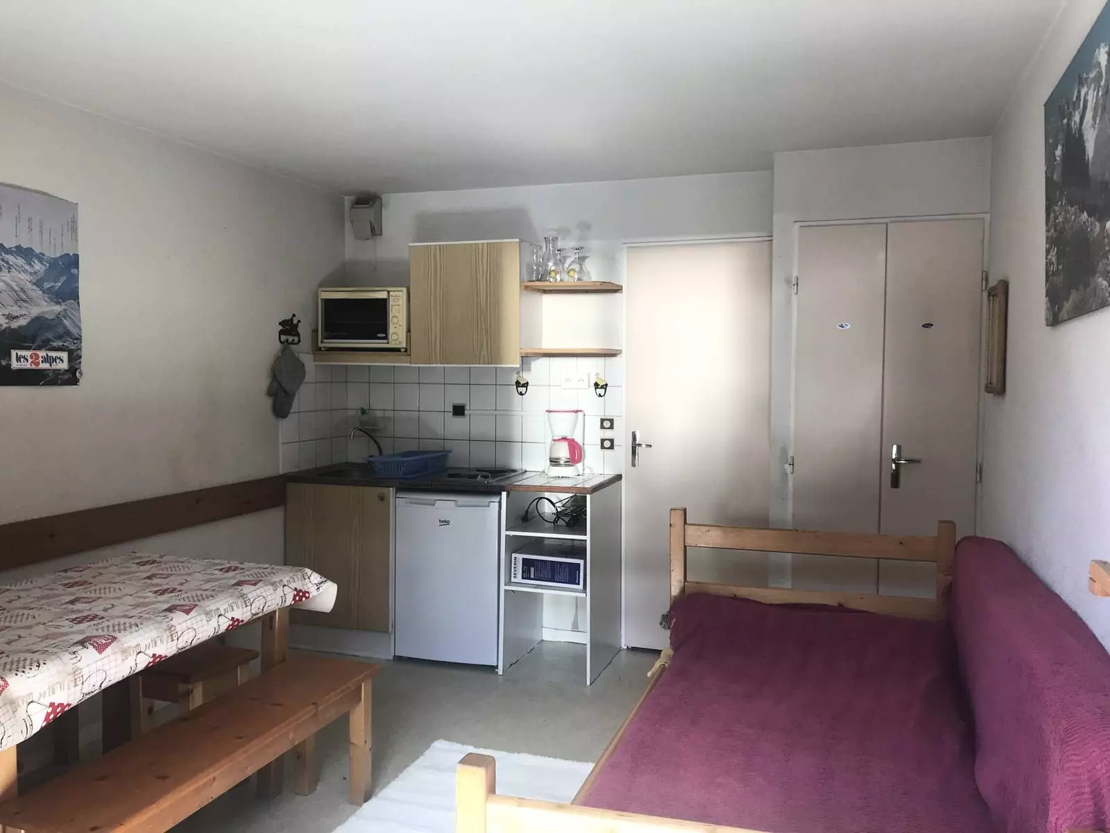 Au sein du quartier Venosc et des ses commodités et commerces (shopping divers, restaurants, sorties...), à quelques petites minutes à pied des pistes, studio de 20m², incontestablement lumineux, présentant: un coin-montagne avec lits-superposés, une salle d'eau séparée des wc, coin-cuisine équipé et séjour. Balcon d'environ 5m², exposé SUD.