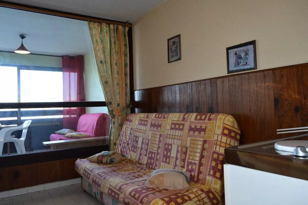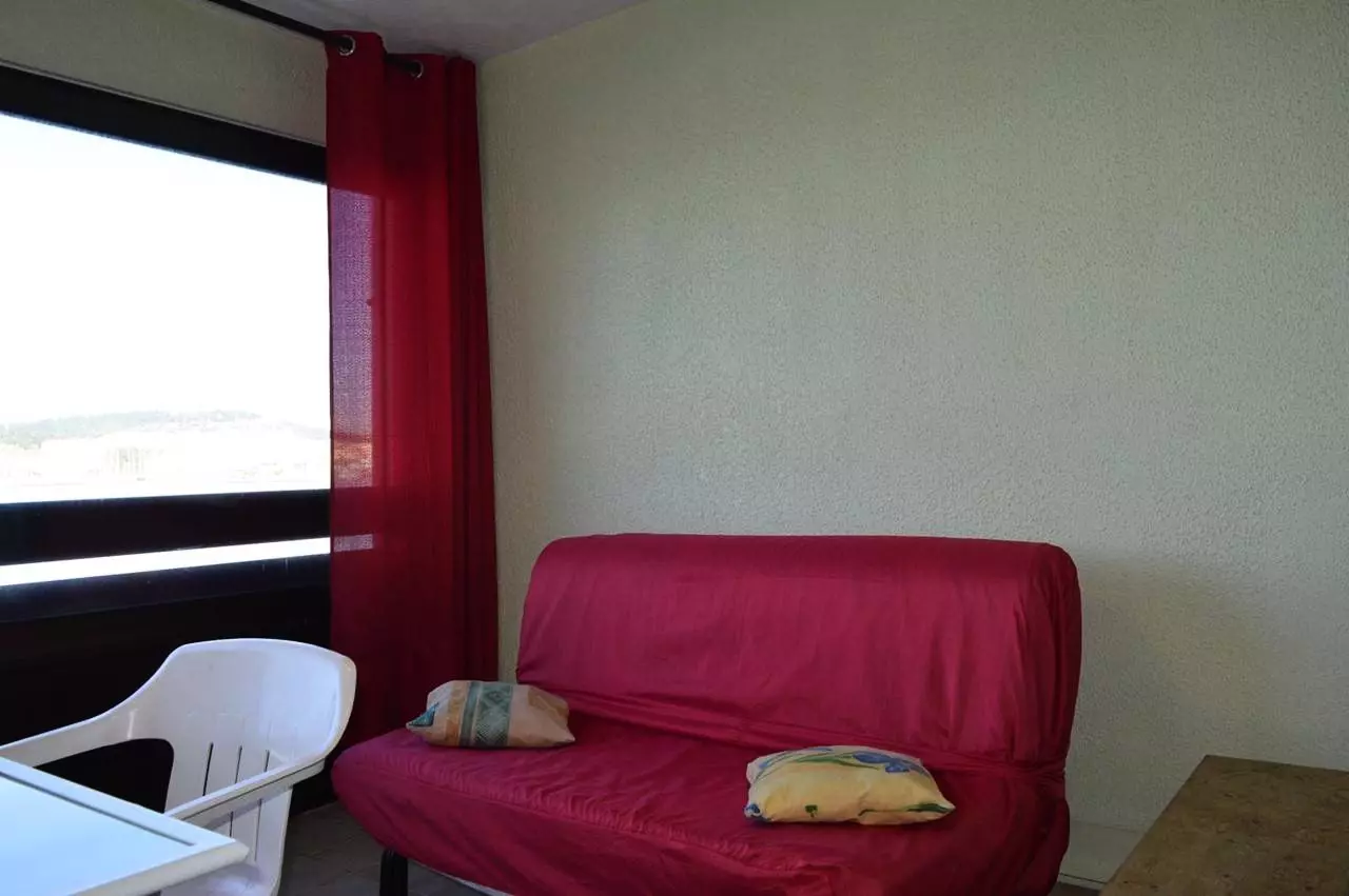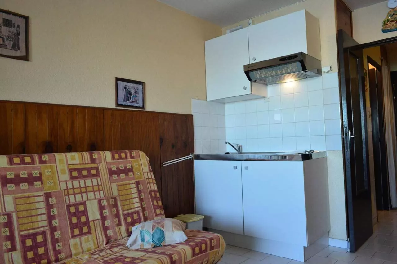 Cet appartement de vacances situé au 1er étage, sans ascenseur, comprend un séjour avec un canapé convertible 2 places en 140 et une télévision, une alcôve avec un lit superposé 2x1 place en 90 chacun, un coin cuisine équipé, une salle d'eau avec WC et une loggia avec canapé 2 places.