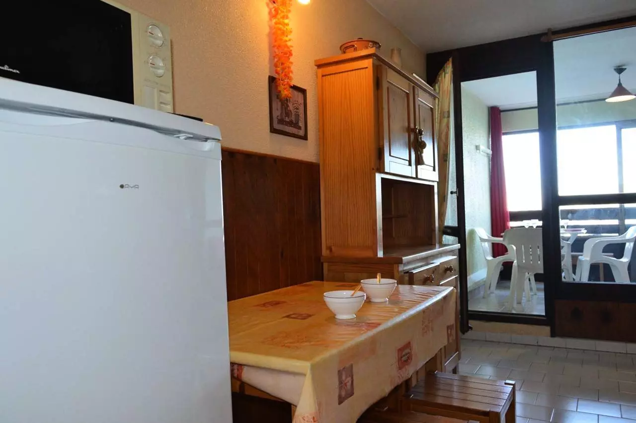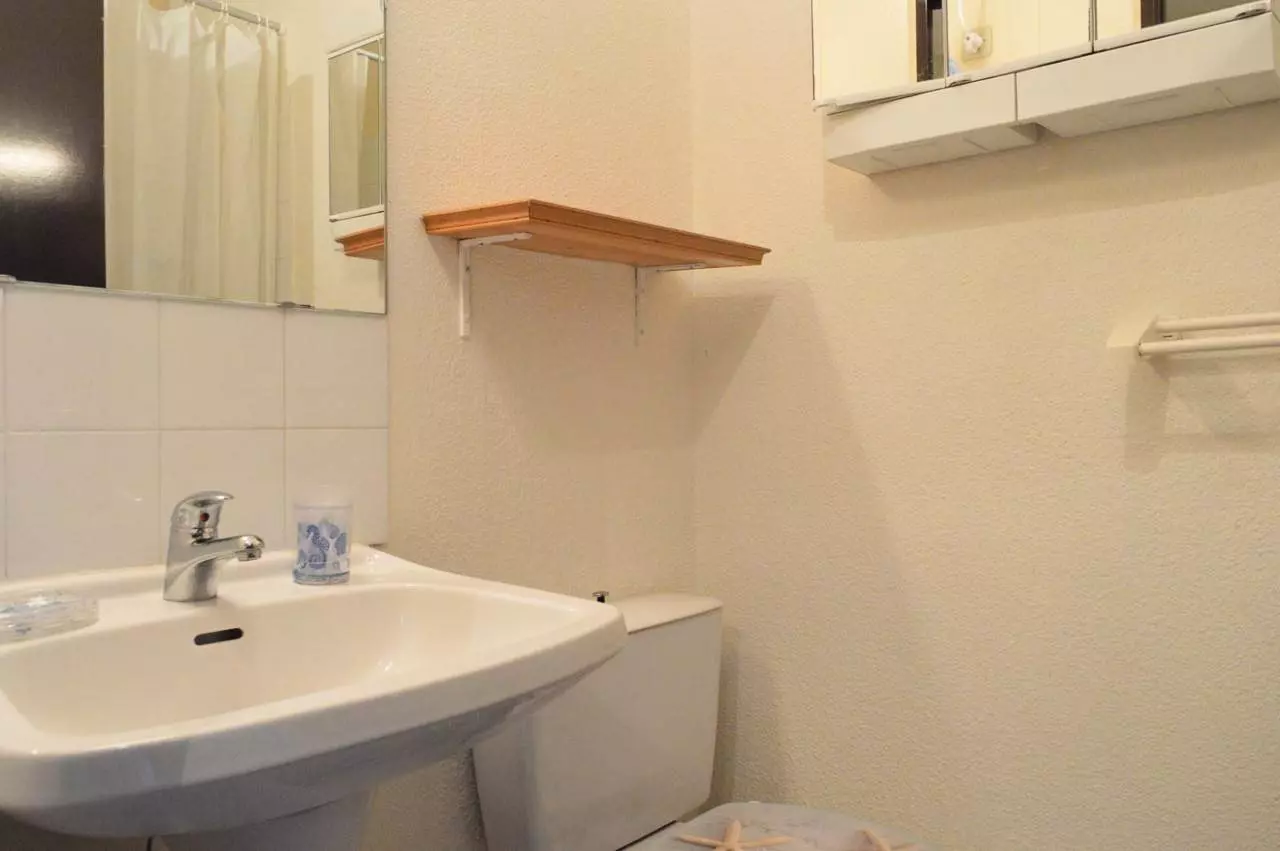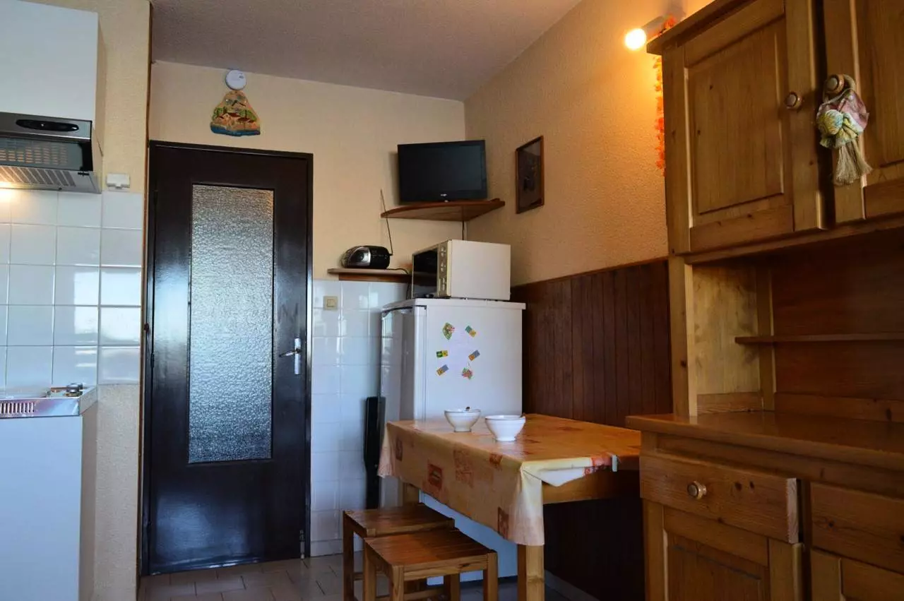Cet appartement de vacances situé au 1er étage, sans ascenseur, comprend un séjour avec un canapé convertible 2 places en 140 et une télévision, une alcôve avec un lit superposé 2x1 place en 90 chacun, un coin cuisine équipé, une salle d'eau avec WC et une loggia avec canapé 2 places.