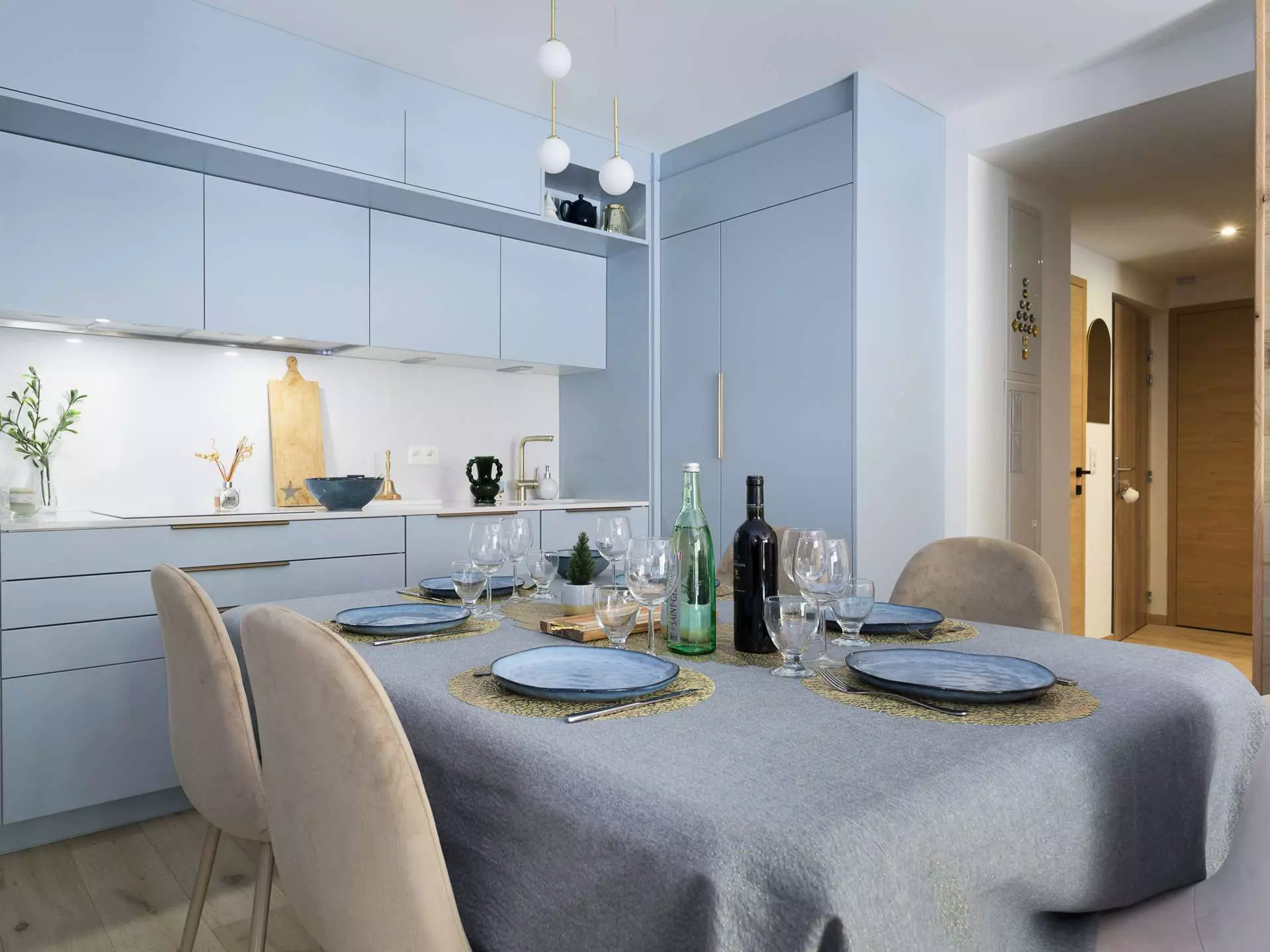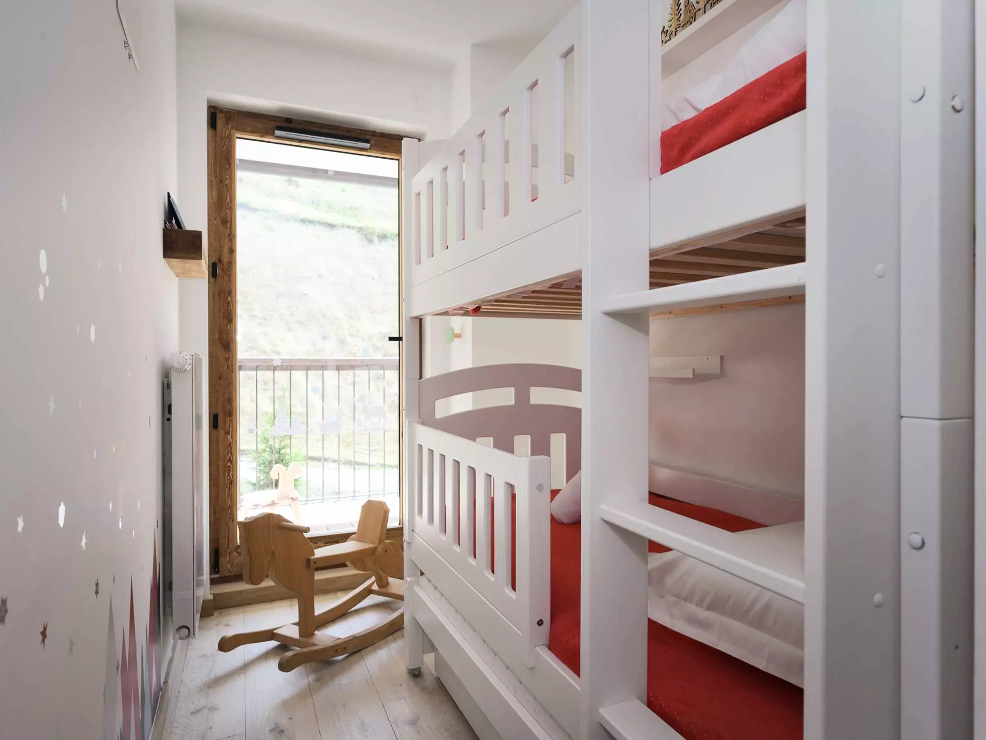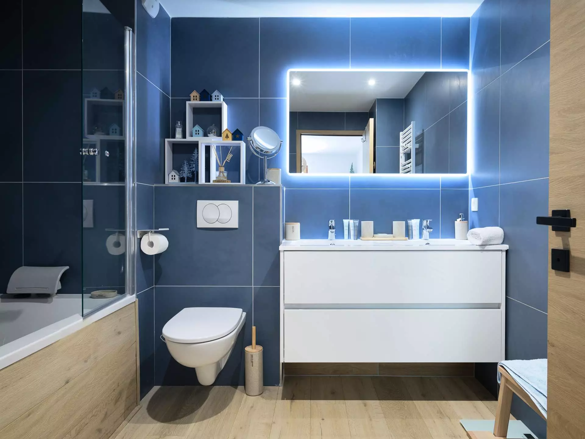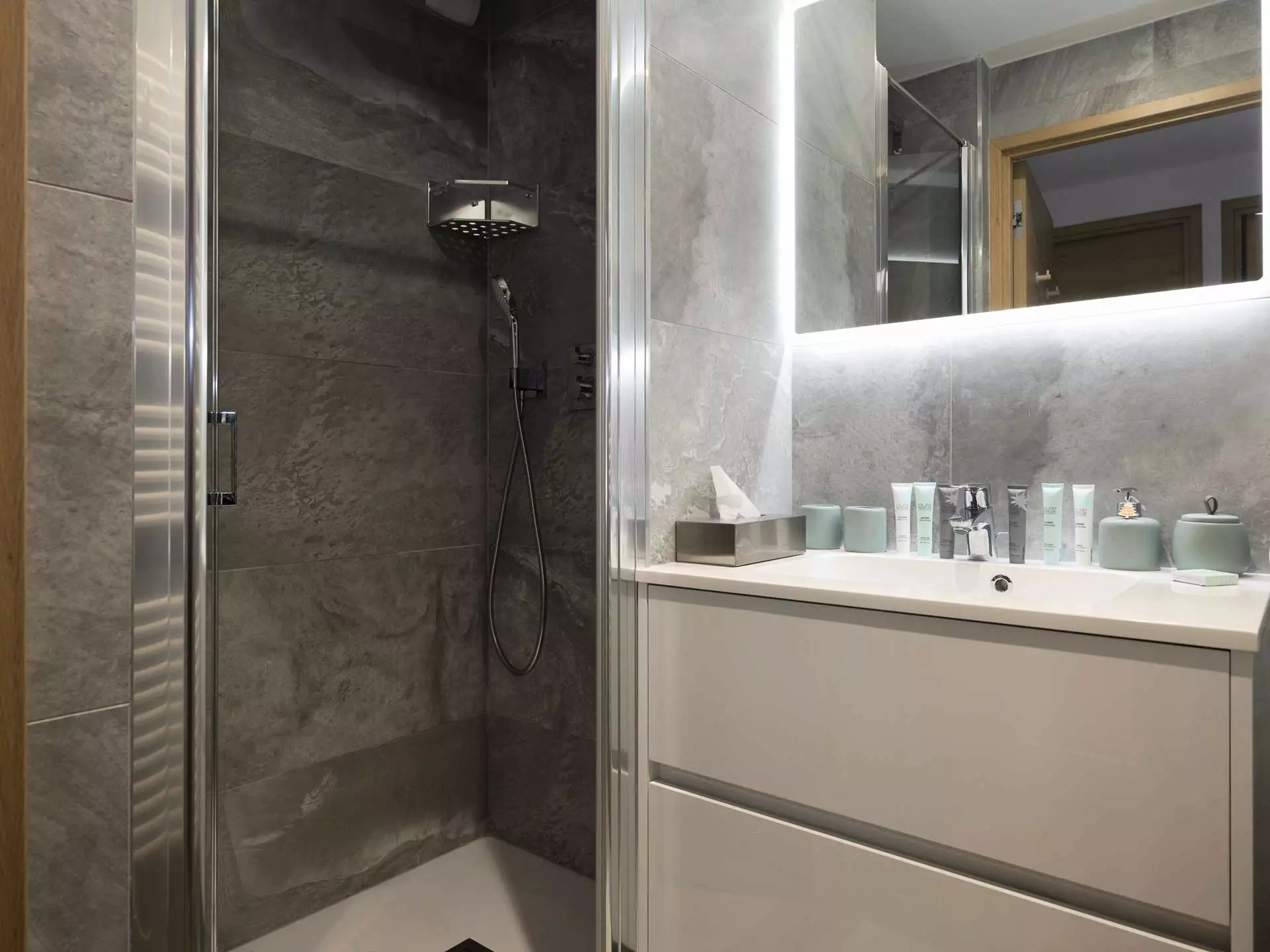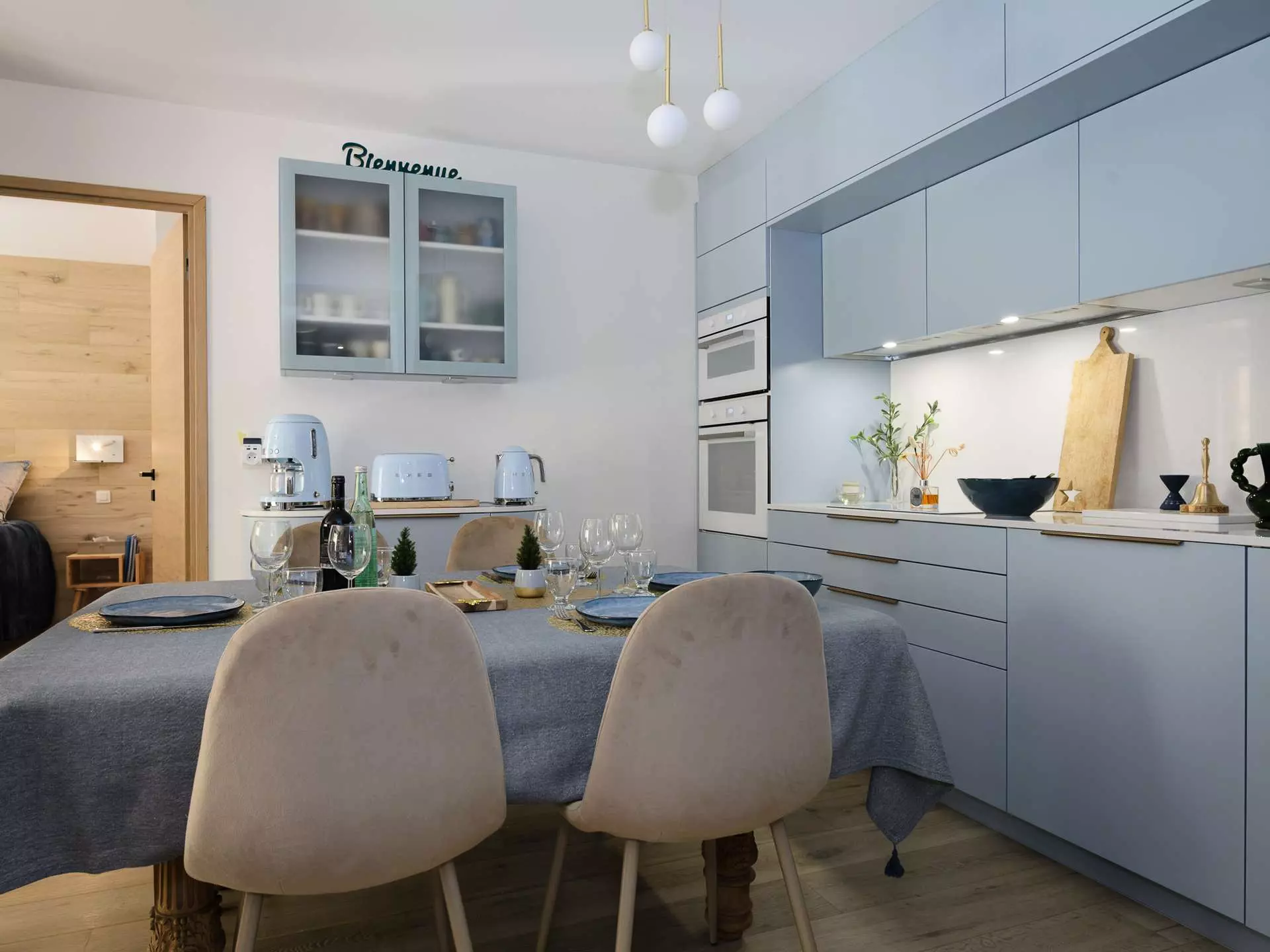 Appartement neuf offrant une décoration chaleureuse et une magnifique vue sur les pistes et la forêt.