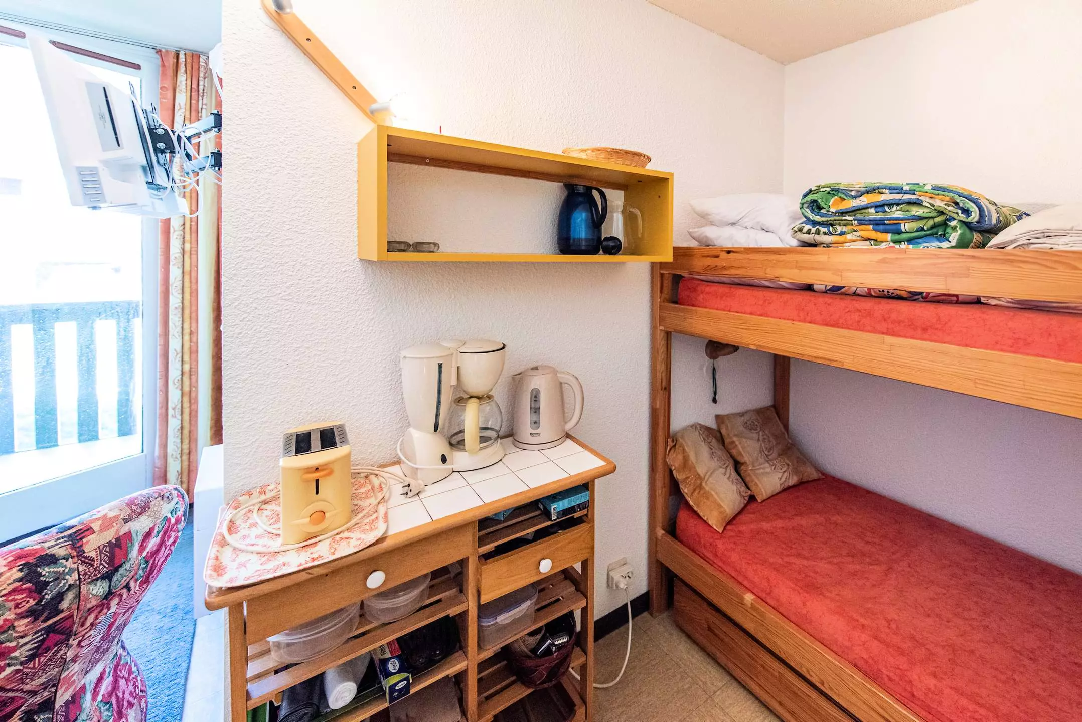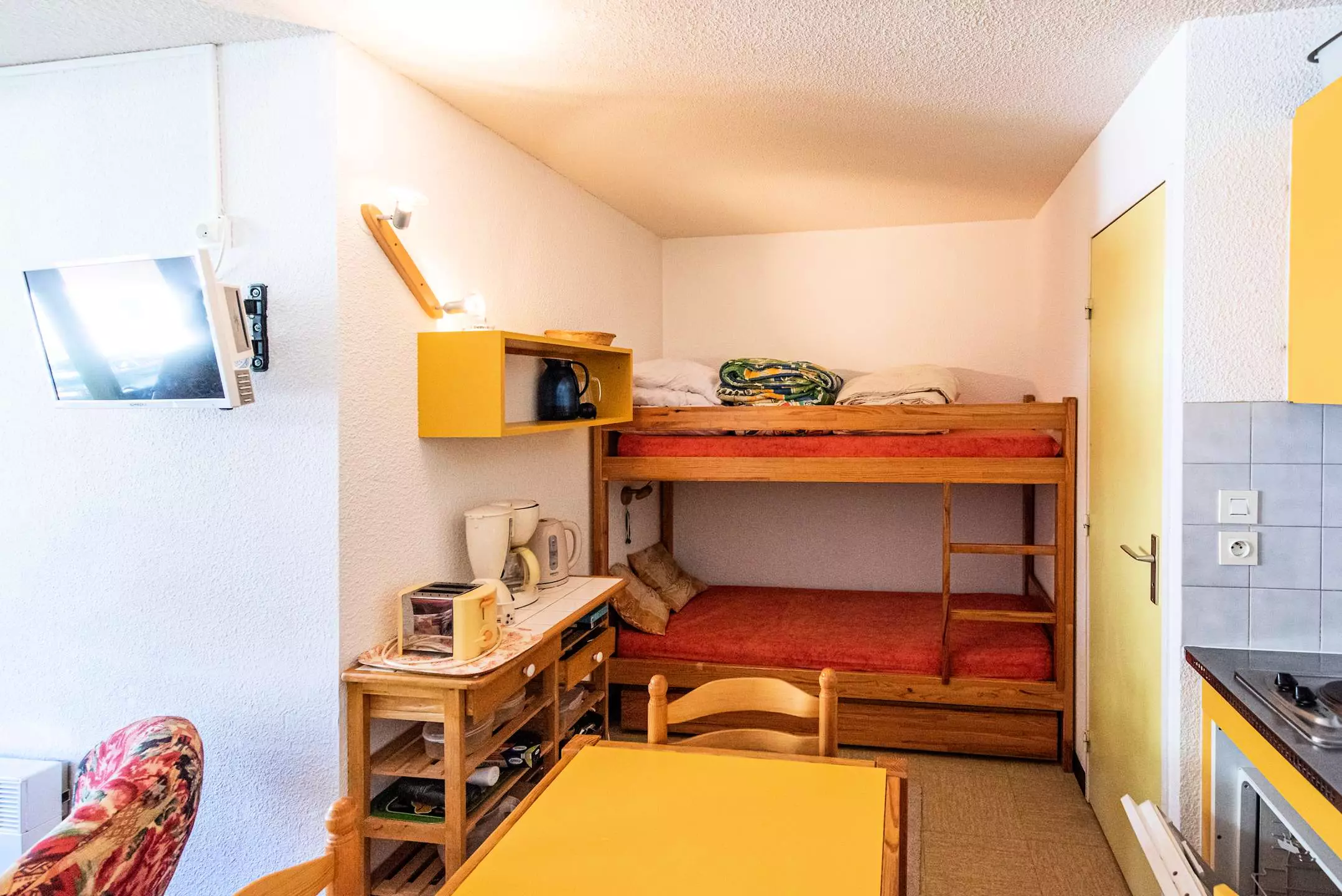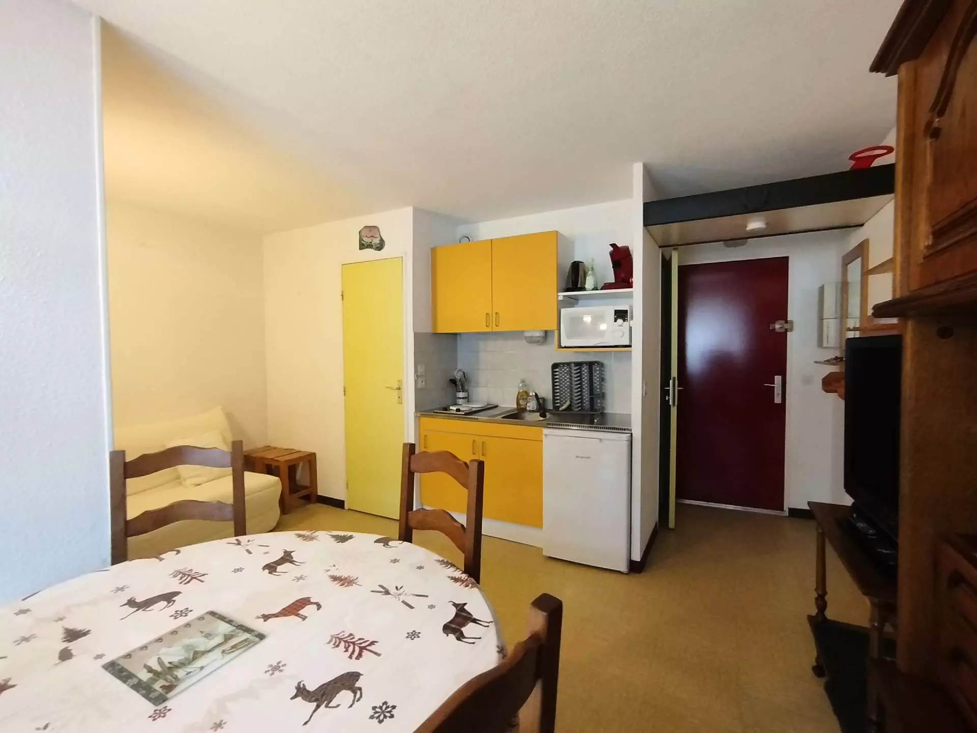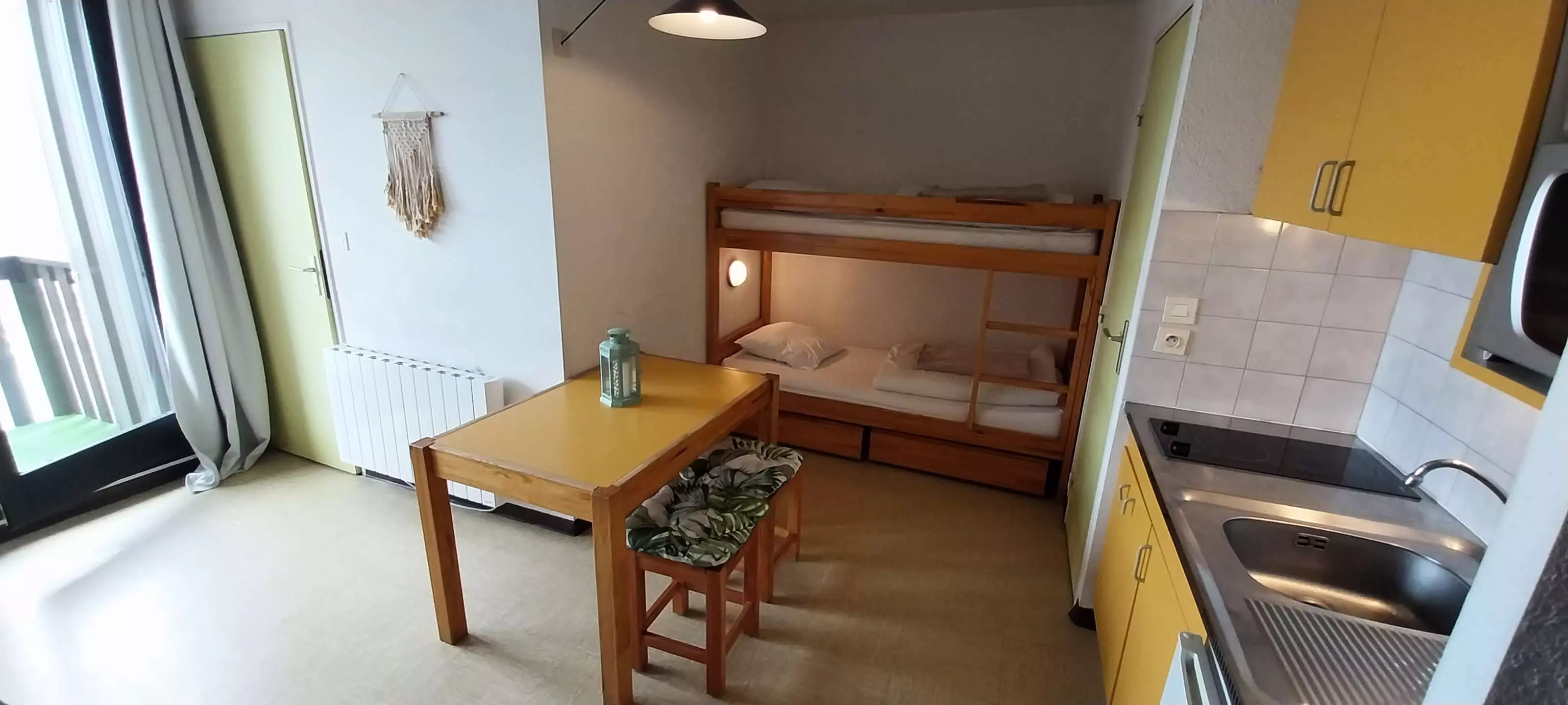 A proximité de la placette et de tout les commerces, ce studio très bien équipé pouvant accueillir 3 personnes est composé de :