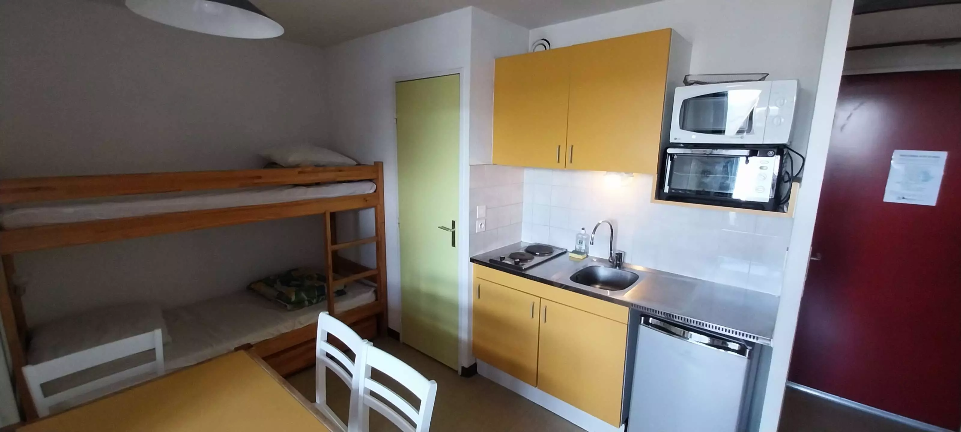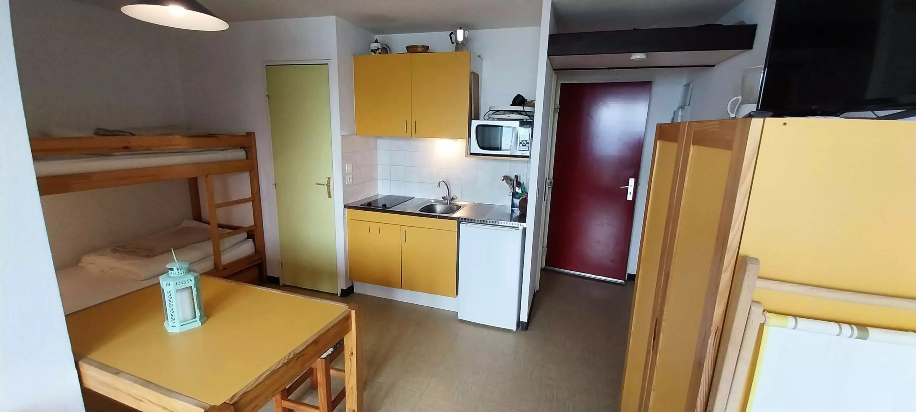 A proximité de la placette et de tout les commerces, ce studio très bien équipé pouvant accueillir 3 personnes est composé de :