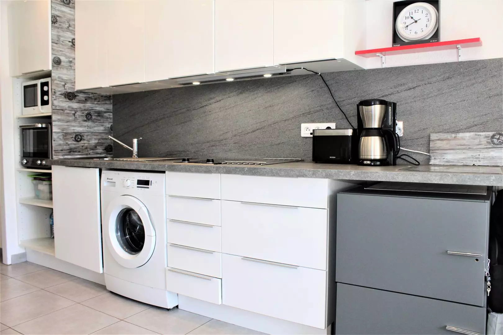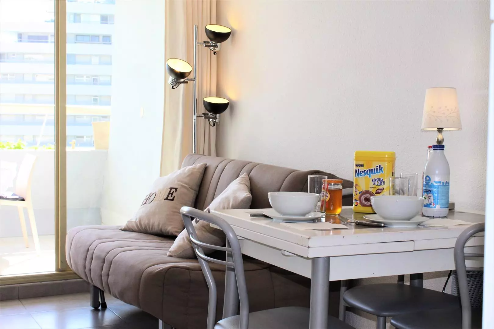 Moderne et chaleureux avec connexion WIFI , il est composé à l'entrée, d'une chambre avec deux lits superposés, une salle de douche et un toilette séparé , dans la pièce principale vous trouverez une cuisine tout équipée (lave-linge, micro-onde, réfrigérateur) son coin repas et un canapé convertible en couchage 140 cm donnant sur une terrasse avec une vue magnifique sur la méditerranée. Cet appartement possède un parking privatif dans la résidence. Ménage de fin de séjour inclus.