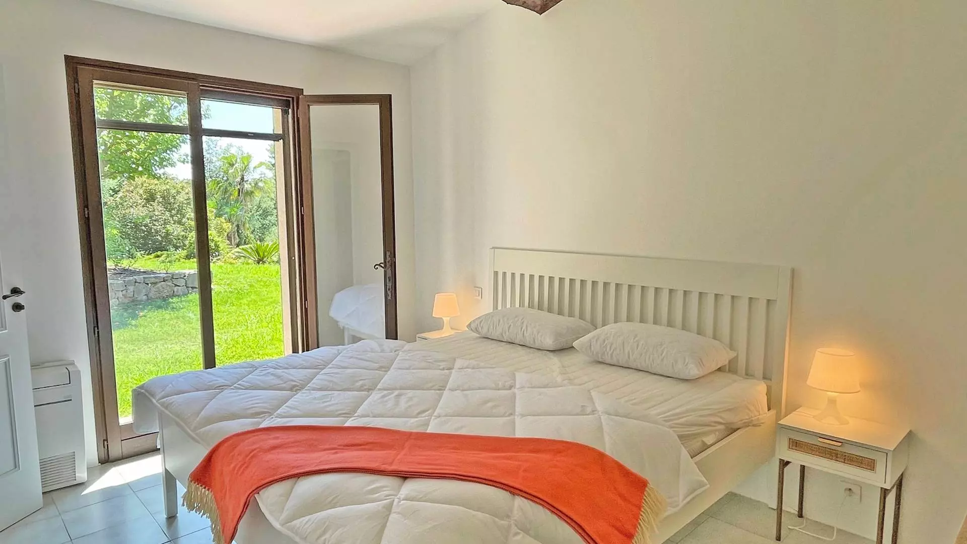 • Chambre 1 : lit double King Size 180x200cm, commode, placard avec salle de douche et WC en suite - Accès jardin