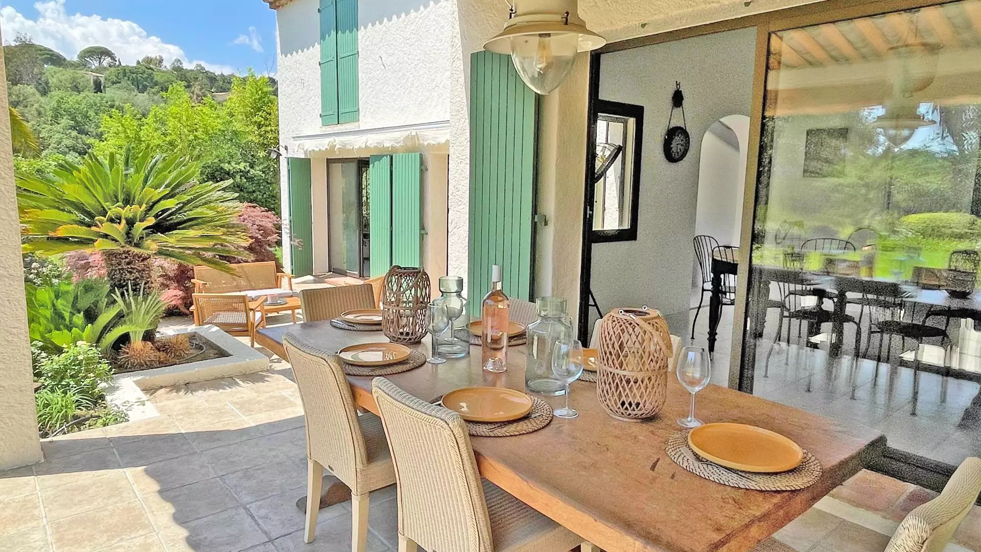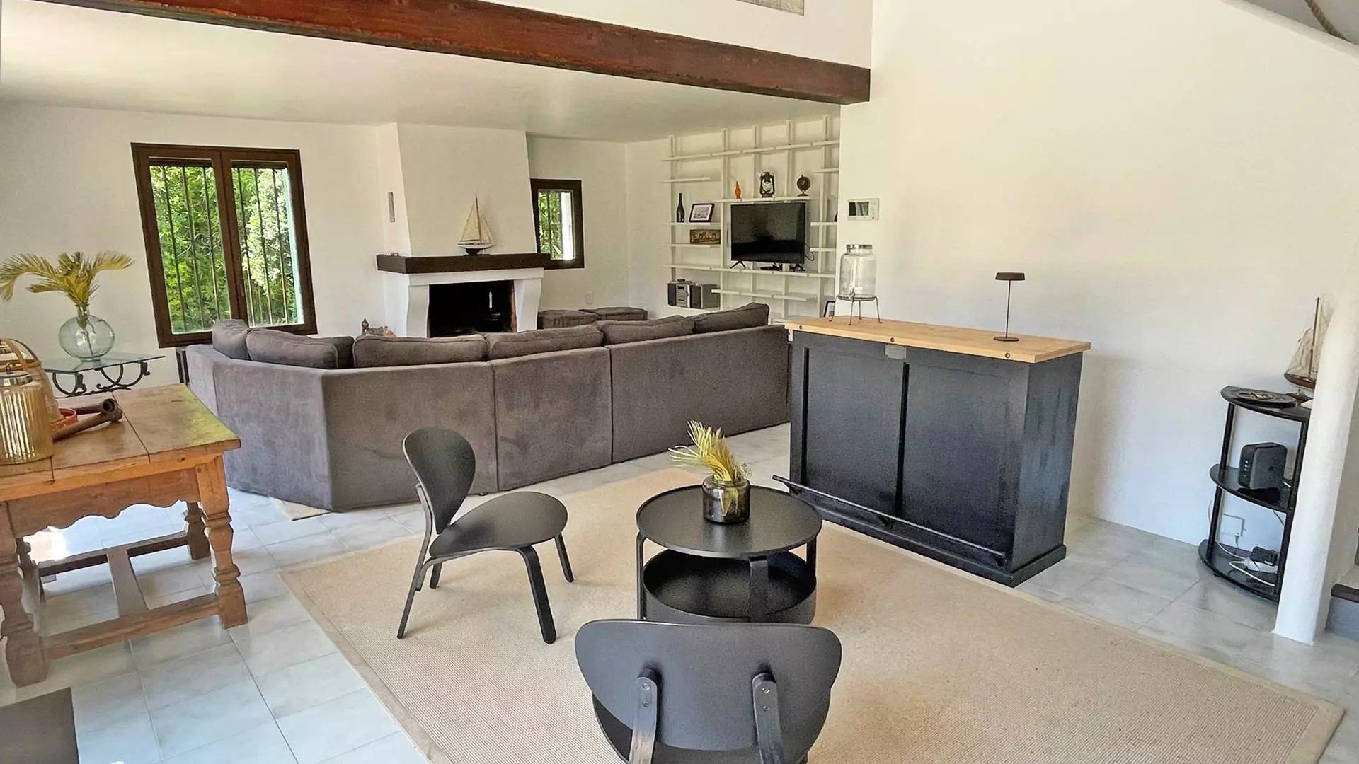 Villa entièrement rénovée avec beaucoup de charme, dans un style industriel et vintage. Elle se situe au sein du Domaine Beauvallon - Bartole, prisé pour sa situation géographique idéale entre Sainte-Maxime et Port Grimaud. L'environnement est calme et arboré, un véritable havre de paix au sein d'un écrin de verdure qui séduira les familles ou groupe d'amis. Le Golf de Beauvallon se situe à 1600 mètres.