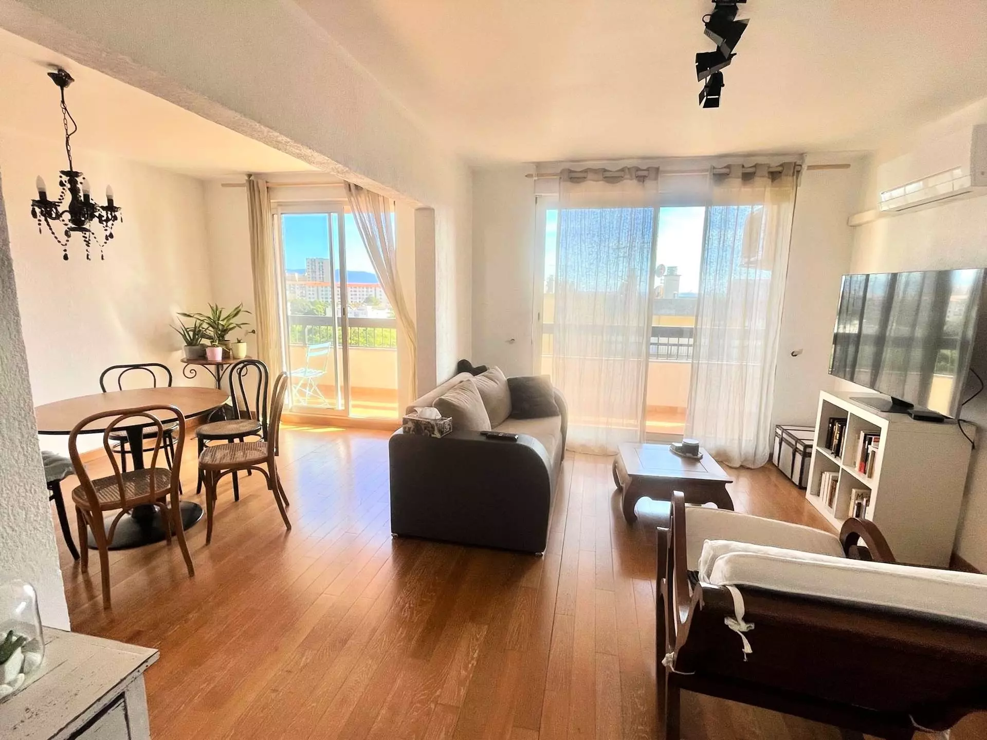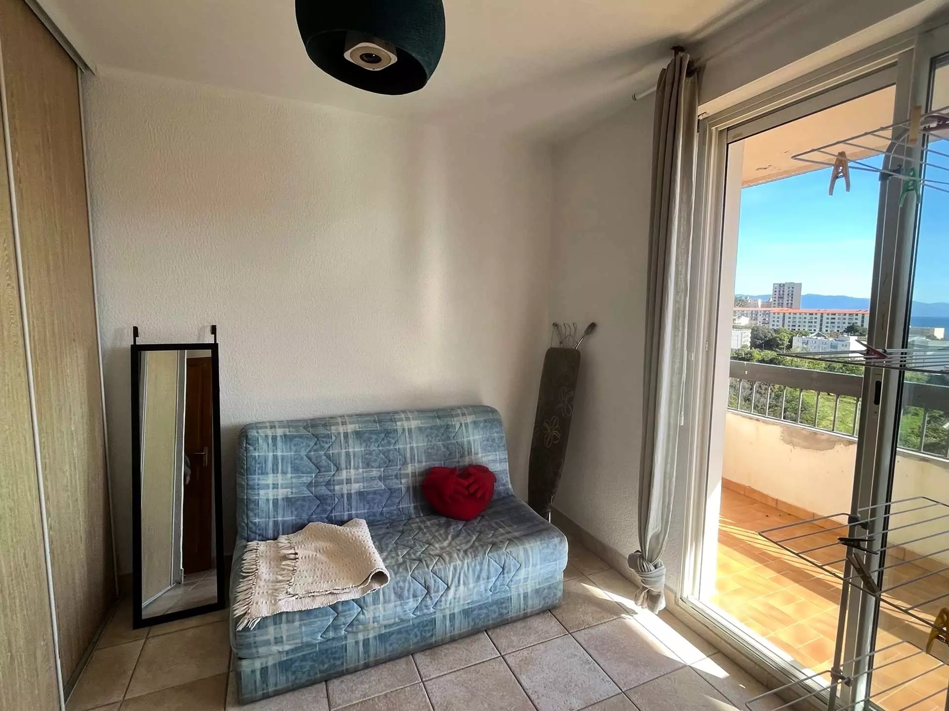L'appartement est composé: d'une entrée, une séjour salle à mangée climatisé et donnant sur la terrasse avec vue mer partielle, une cuisine indépendante avec un petit balcon, deux chambres dont une avec climatisation réversible (1 couchage en 140 et un couchage simple), une salle de bain et un WC indépendant.