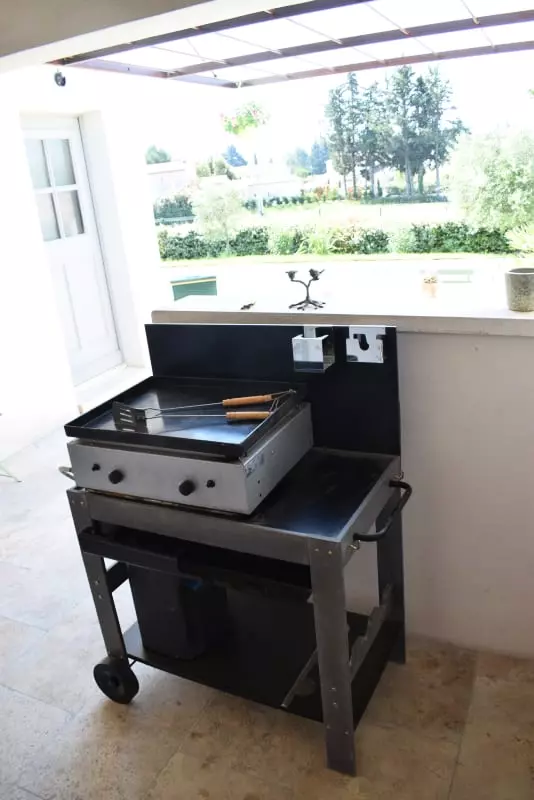 A l'extérieur, une belle piscine 9x5 avec son pool-house et une cuisine d'été (plancha, frigo, chaises longues…).
