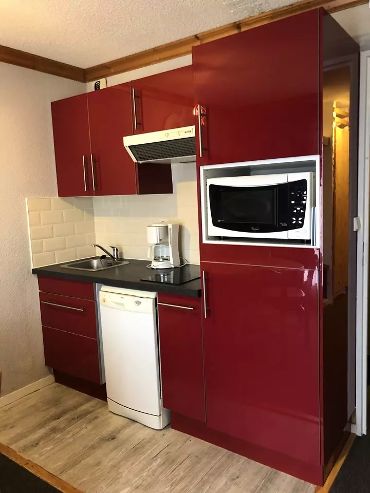 Équipement cuisine : Four micro-onde + Grill, Lave vaisselle, 2 plaques vitrocéramique, réfrigérateur, hotte.