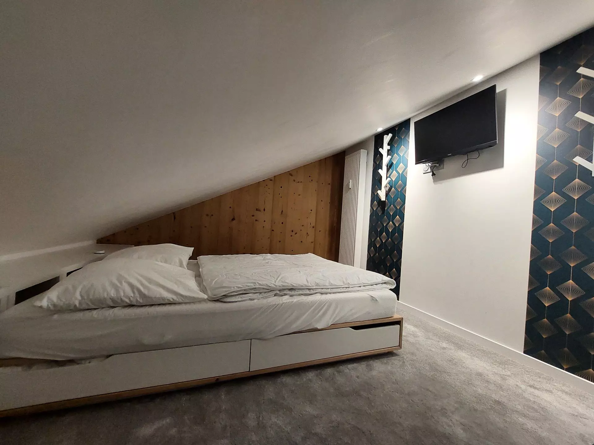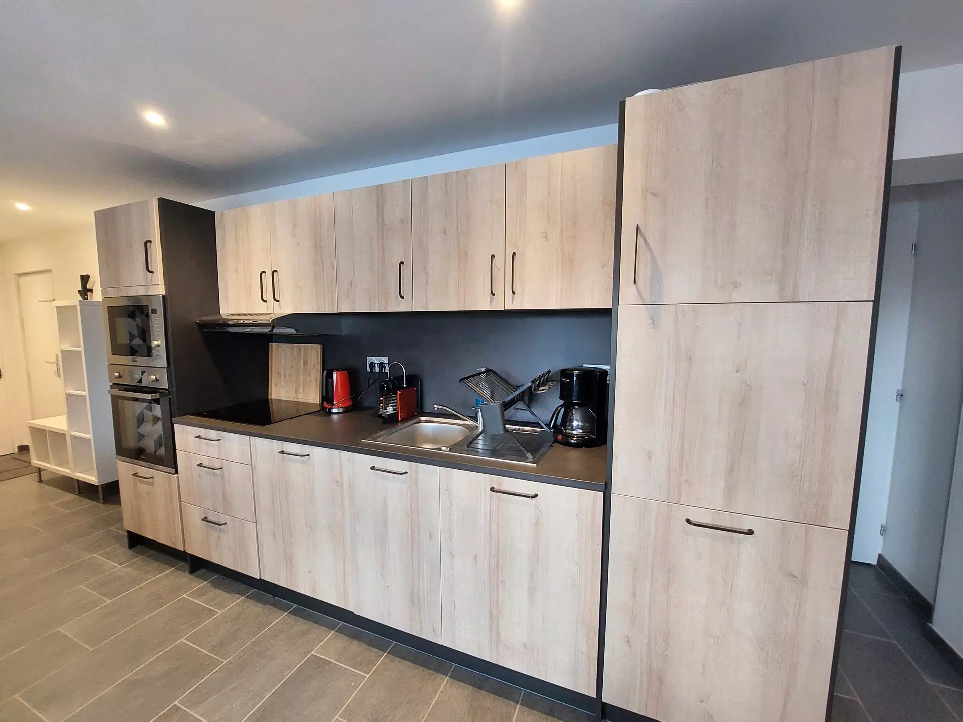 Equipements: 4 plaques vitrocéramiques, four, réfrigérateur, lave-vaisselle, cafetière, bouilloire, grille-pain, appareil à raclette, lave-linge.
