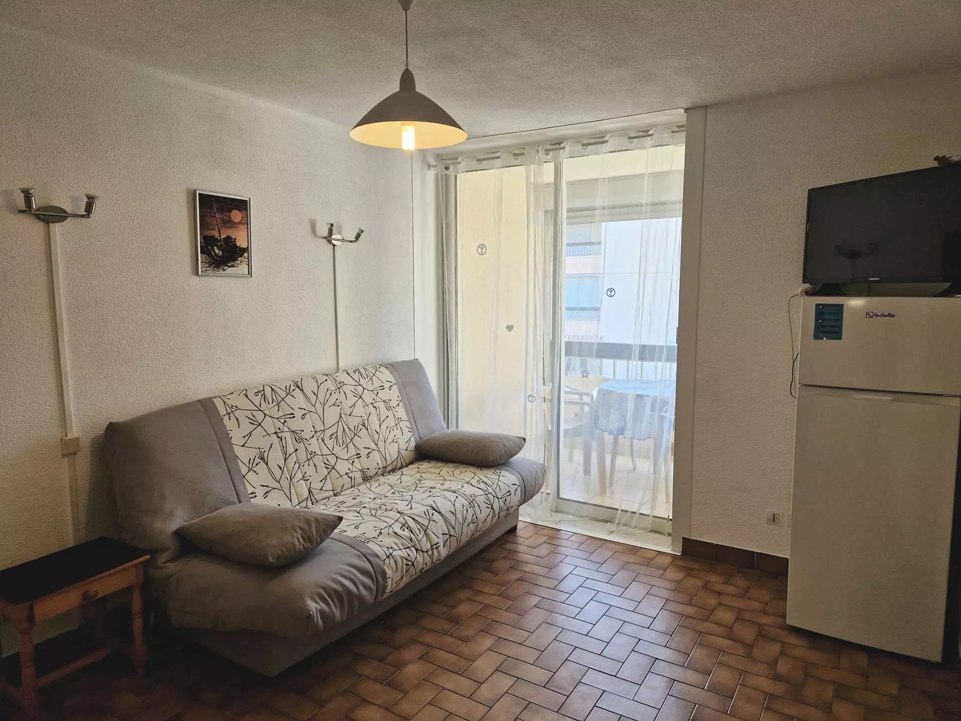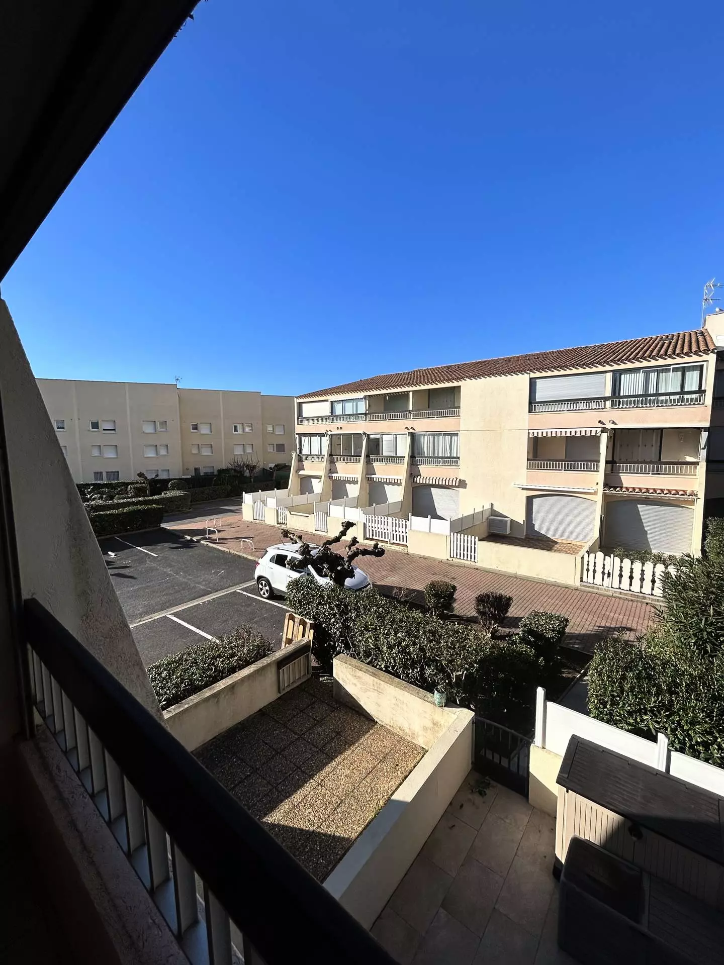 Dans le centre de Marseillan plage, appartement T2 au premier étage avec terrasse et parking.