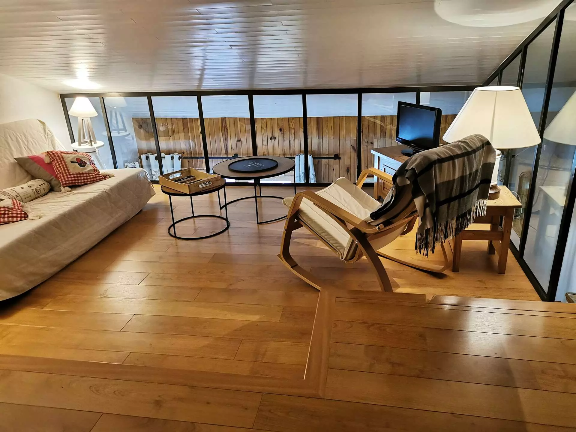 Le séjour est pourvu d'un canapé et d'un espace repas. La chambre du bas est aménagée avec 2 lits simples, la mezzanine avec un canapé convertible. Les deux chambres à l'étage sont équipées d'un lit double. Des couettes sont fournies pour chaque lit.