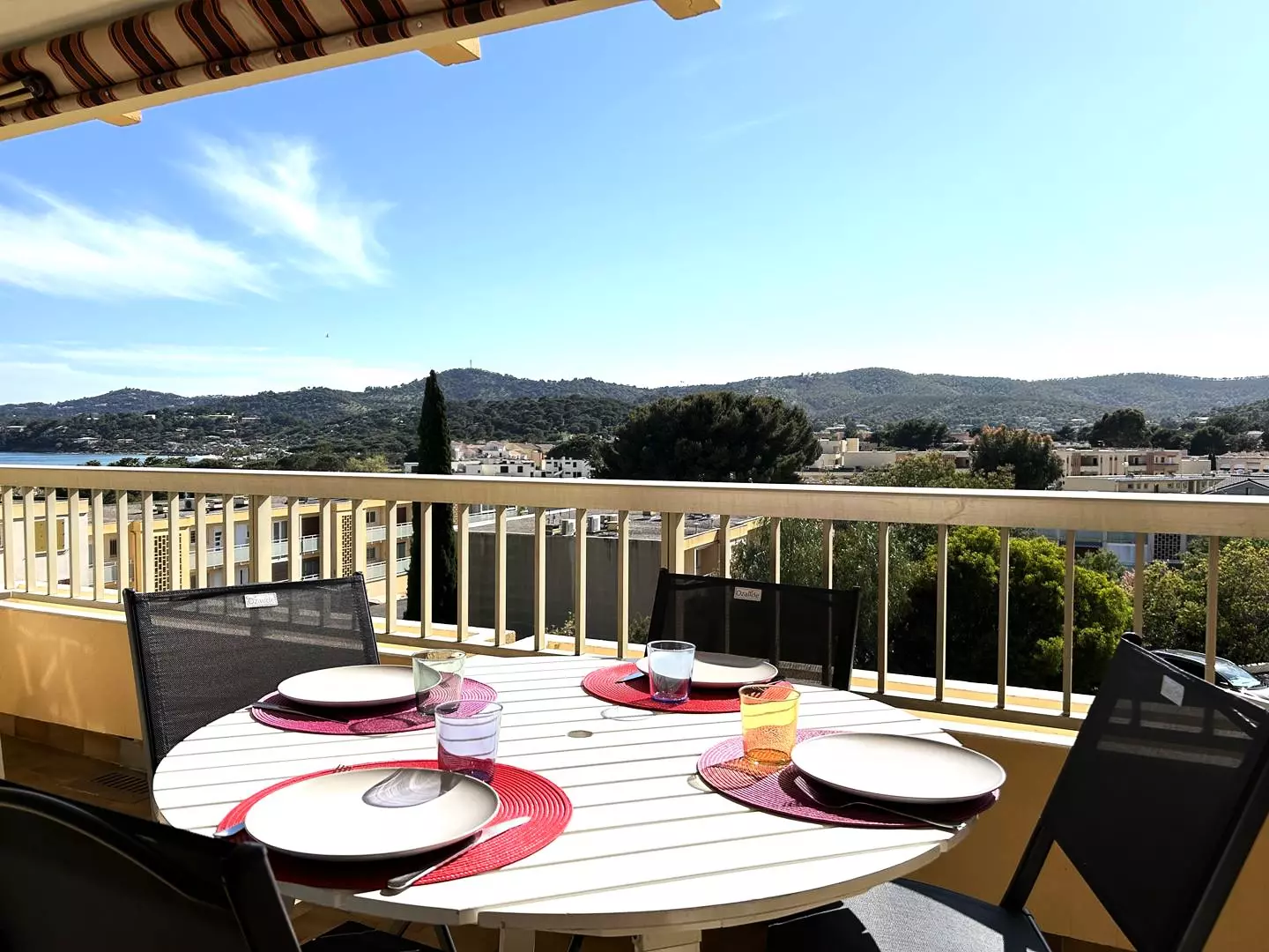 Les plus de cette location de vacances : Garage privatif pour votre véhicule, vue mer sur la baie de la Favière.