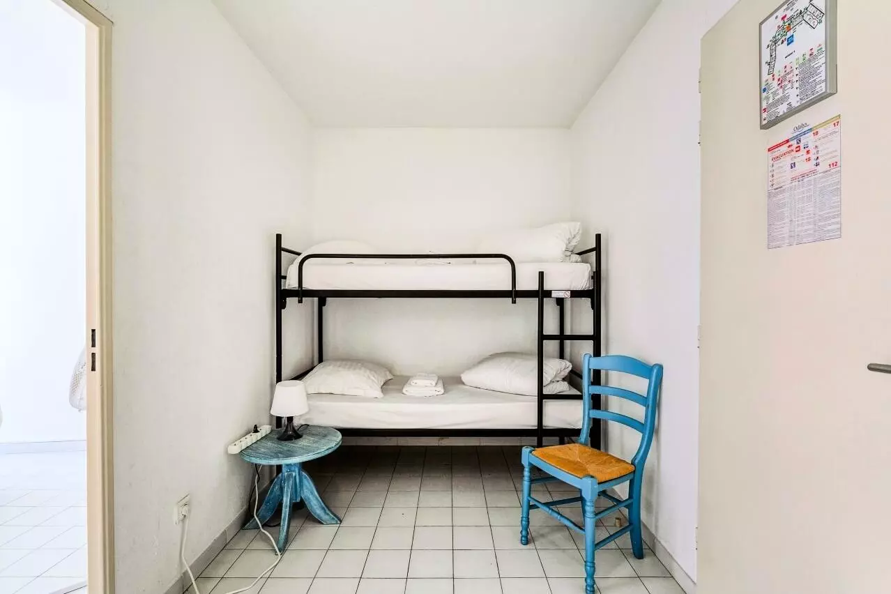 Chambres : 1 lit double et 1 coin cabine avec 2 lits simples.