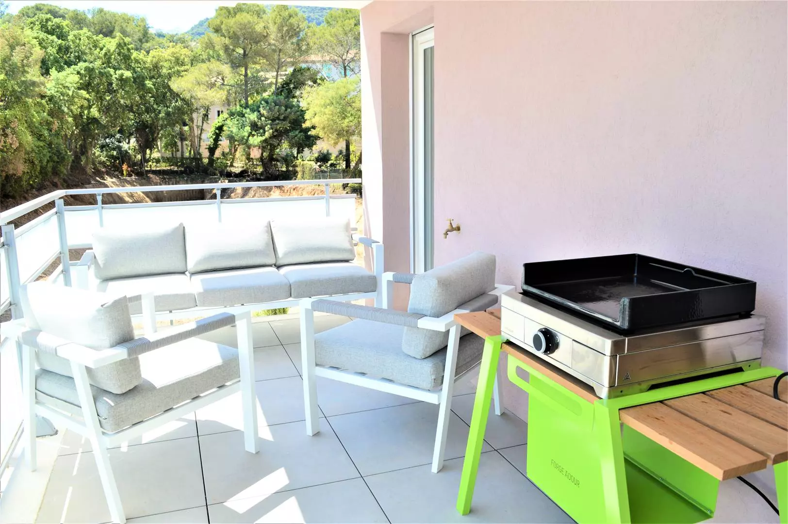 Situé dans un immeuble neuf de très beau standing à deux pas de la magnifique plage de Bonporteau à Cavalaire sur Mer.