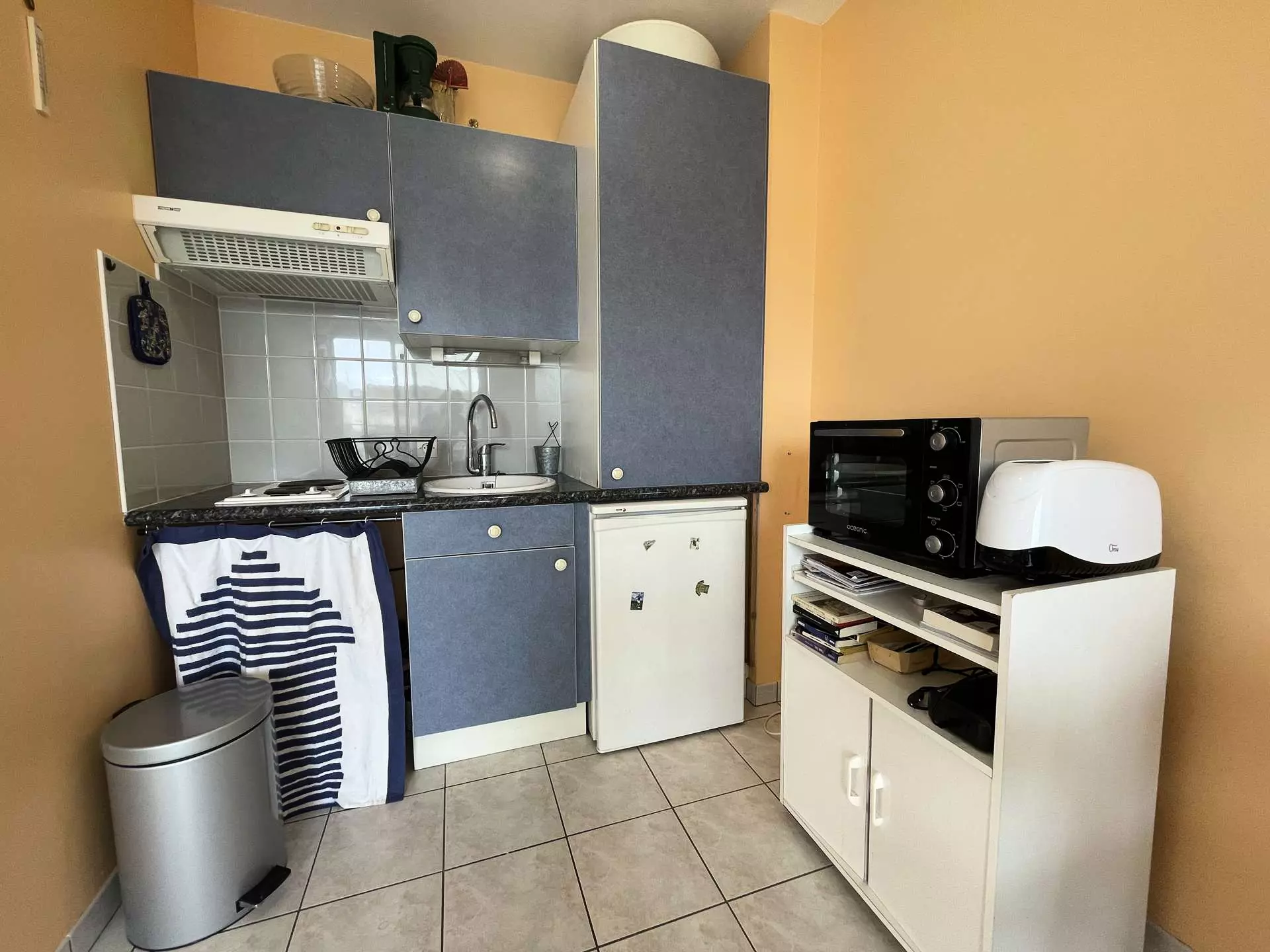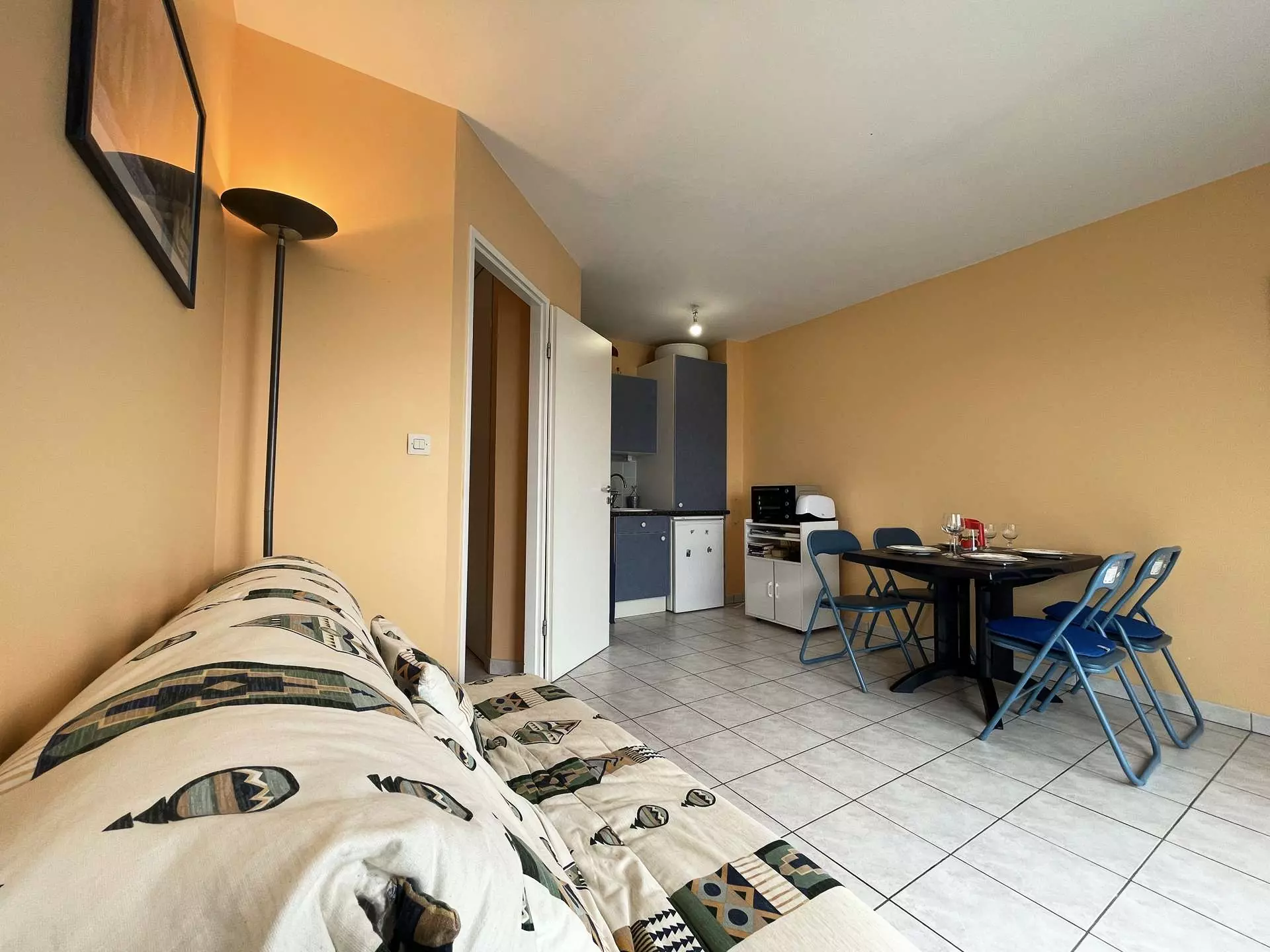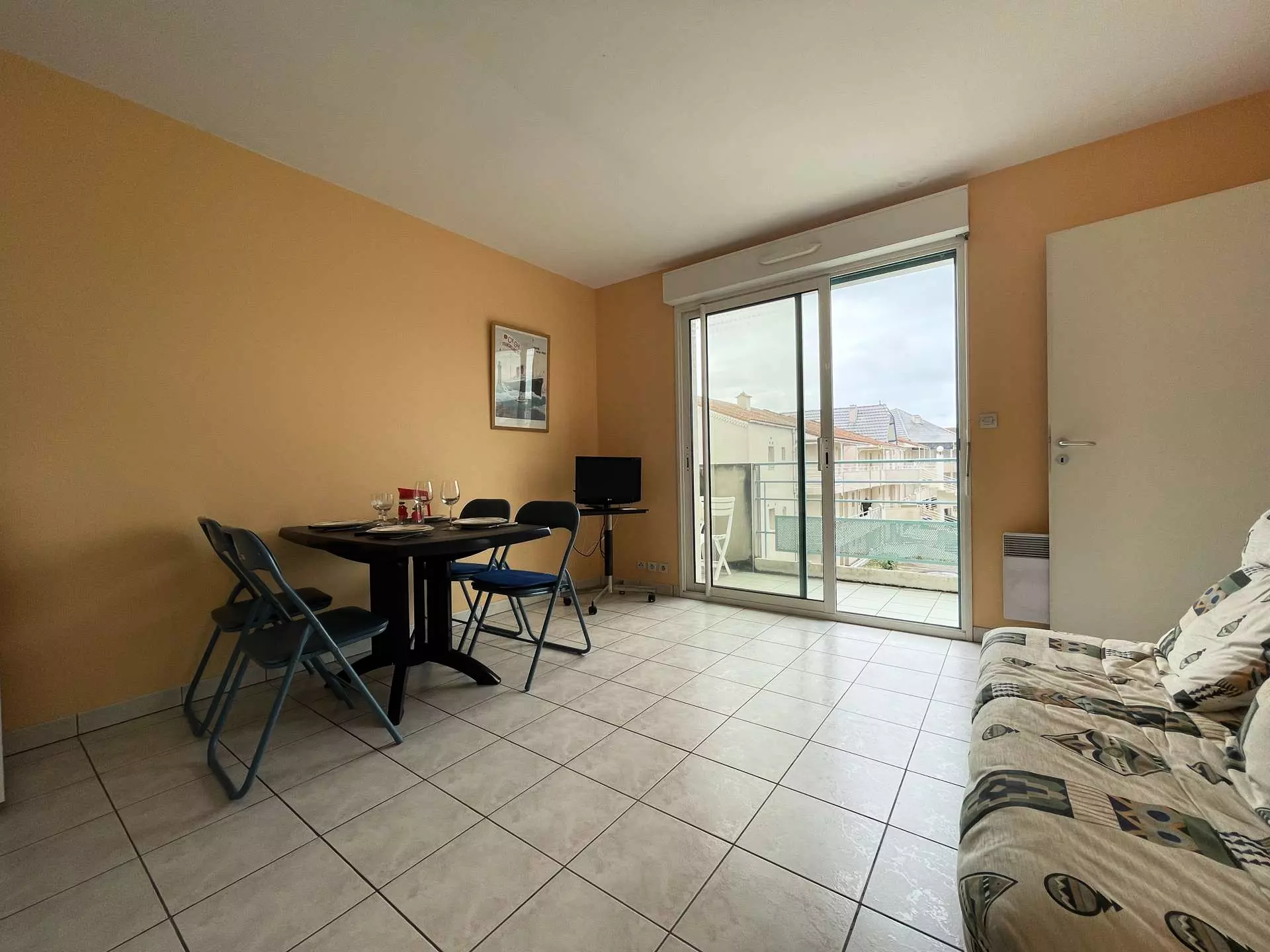 Cet hébergement de vacances est situé dans le centre de Châtelaillon Plage et offre de nombreuses prestations. Il est au deuxième étage (avec ascenseur) et se compose d'un séjour avec canapé convertible pour deux personnes en 140cm, d'une petite chambre fermée avec un lit pour deux personnes en 140cm, d'une cuisine équipée, d'une salle d'eau avec WC. Remise et retour des clés sur La Rochelle.