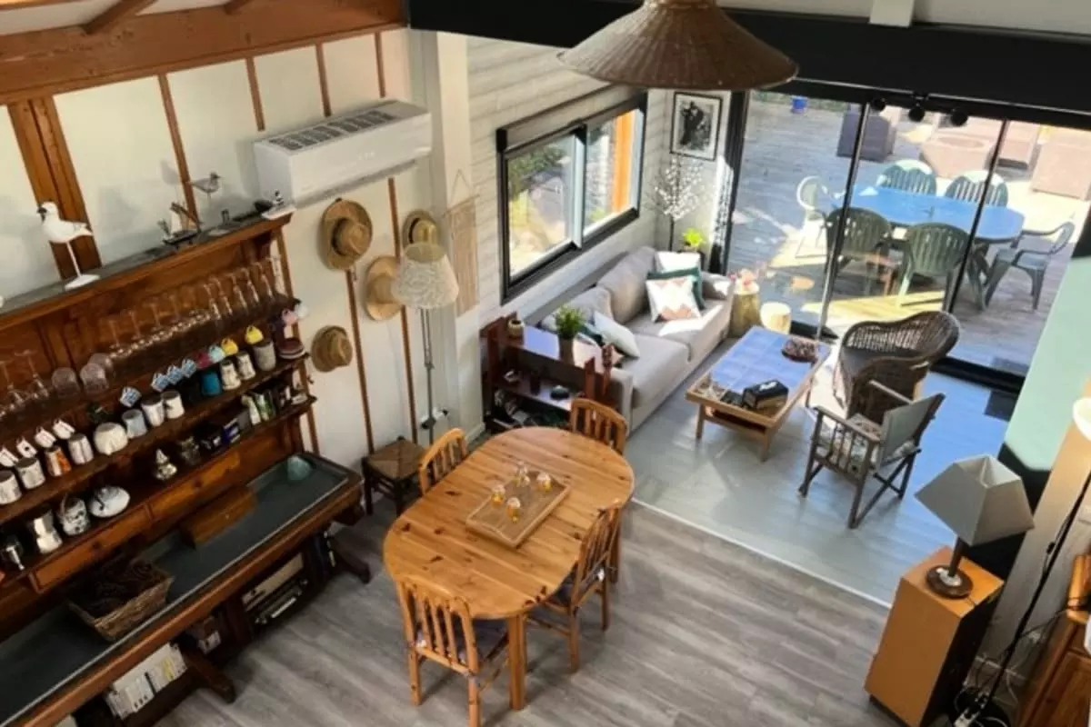 Sa grande terrasse vous offrira des moment chaleureux en famille autours d'un bon repas, le lotissement privé est équipé d'une piscine commune ouverte durant la saison (15 juin au 15 septembre) idéale pour les familles.